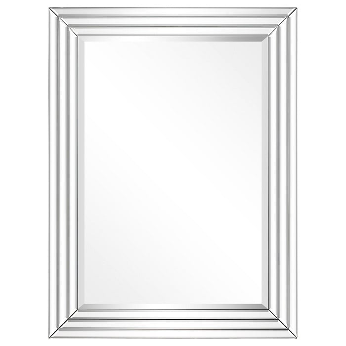 It has a frame made up of multi faceted mirrored bars. Each mirrored panel on the piece is beveled making for the most dazzling displays of light and reflections. It is a perfect accent piece for an entryway, bathroom, bedroom or any room in your home. Place this mirror in a room and make it look instantly larger and brighter! 4Hooks are affixed to the back of the mirror so it is ready to hang right out of the box in either a horizontal or vertical orientation!