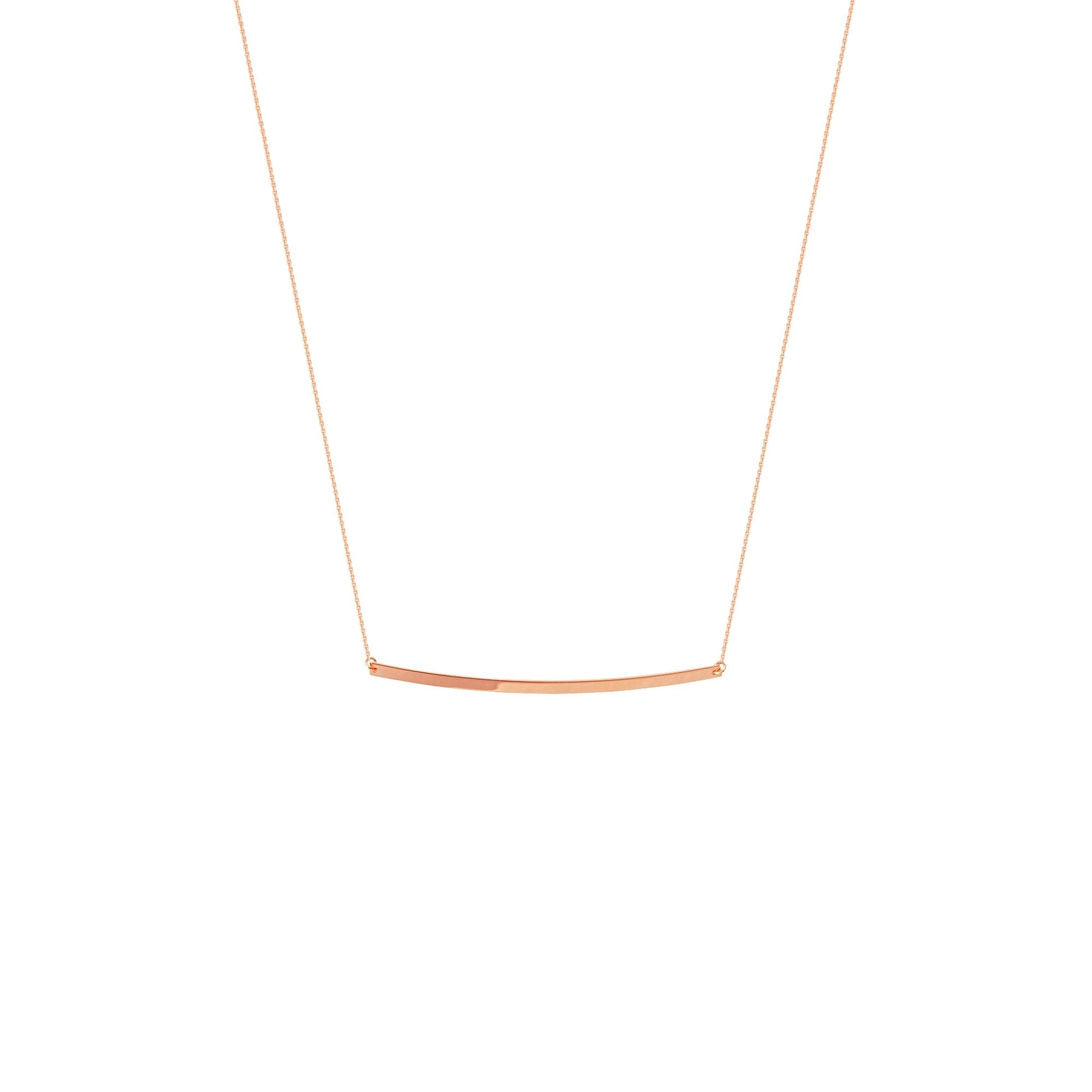 14kt Pink Gold Thin Curved Bar Necklace. Ajustable 16-18 inches with a lobster clasp.