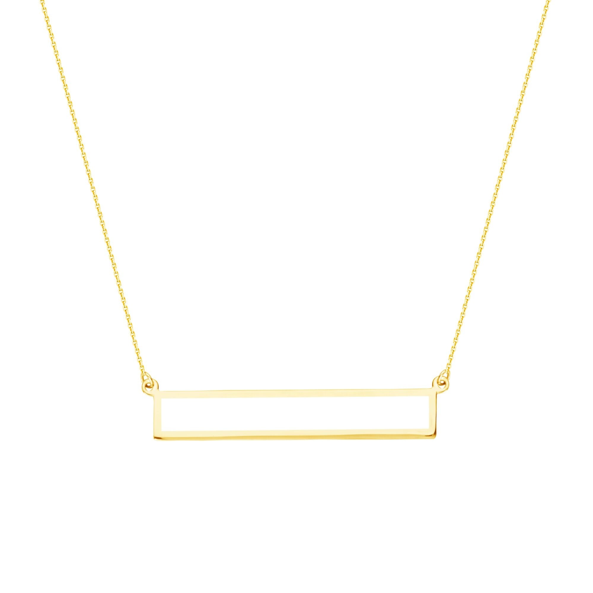 14kt Yellow Gold Rectanguler Frame Necklace. Adjustable 16-18 inches with a lobster clasp.