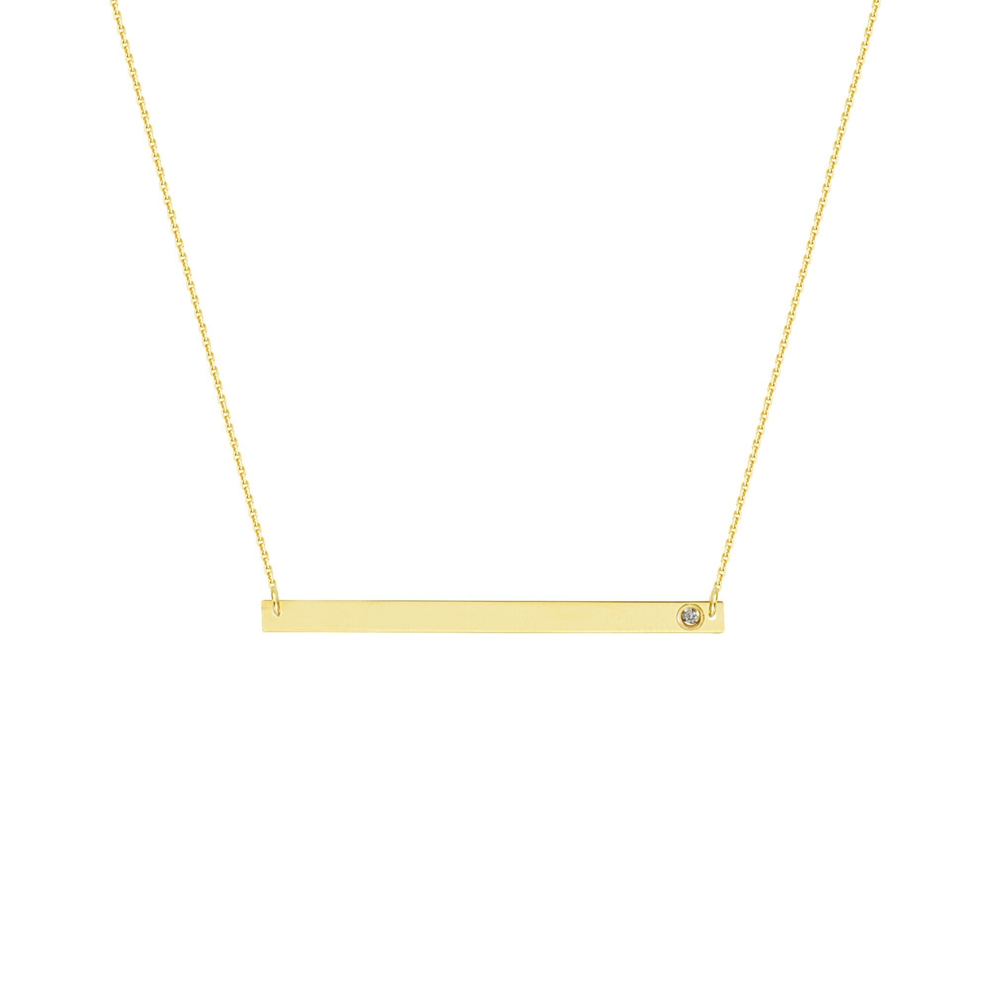 14kt Yellow Gold Thin Ba Necklace with a 1 point diamond. Adjustable 16-18 inches with a lobster clasp.