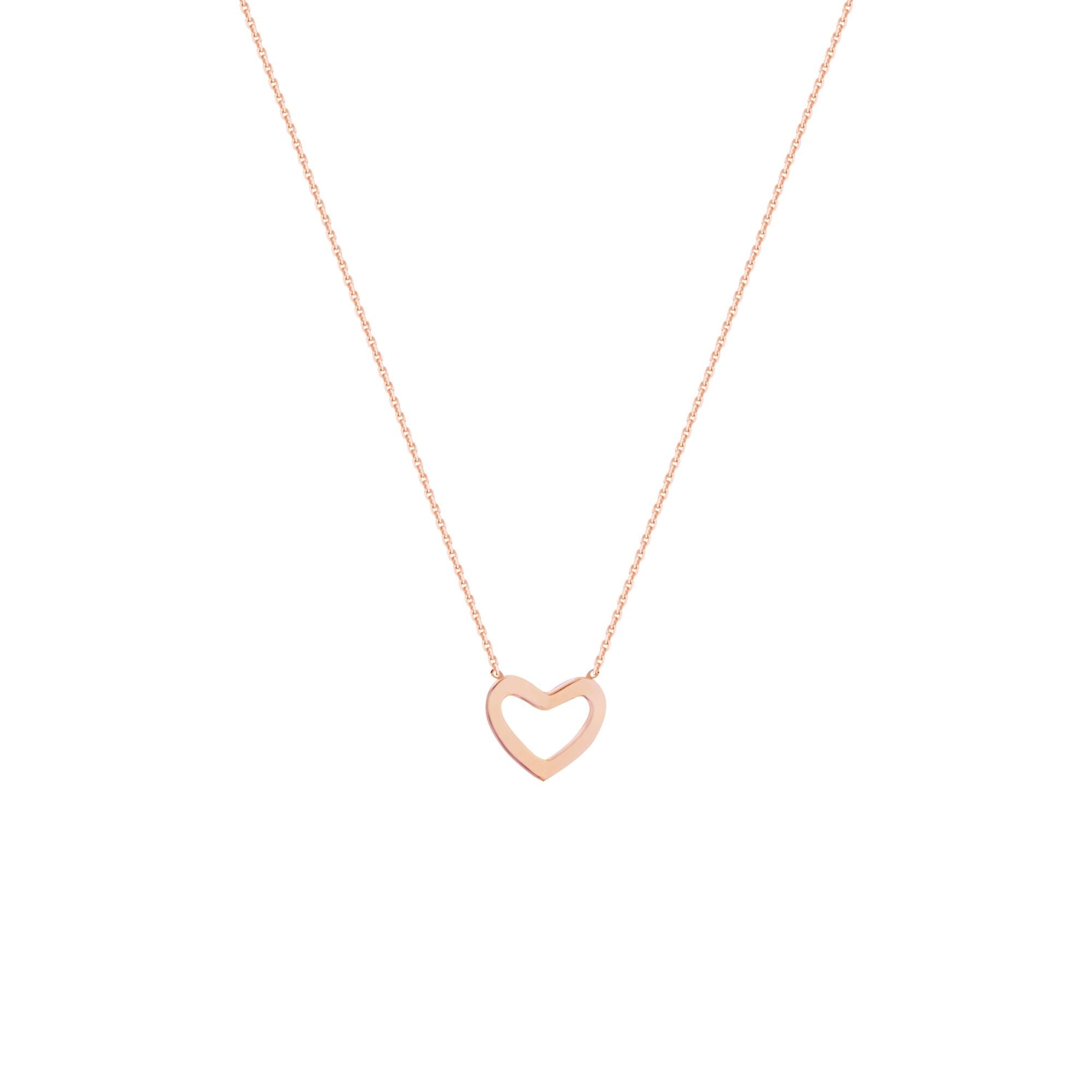 This sweet 14kt Pink Gold mini heart necklace is the perfect way to tell someone you love them. Suspended on 16-18 adjustable diamond cut cable chain with lobster clasp.