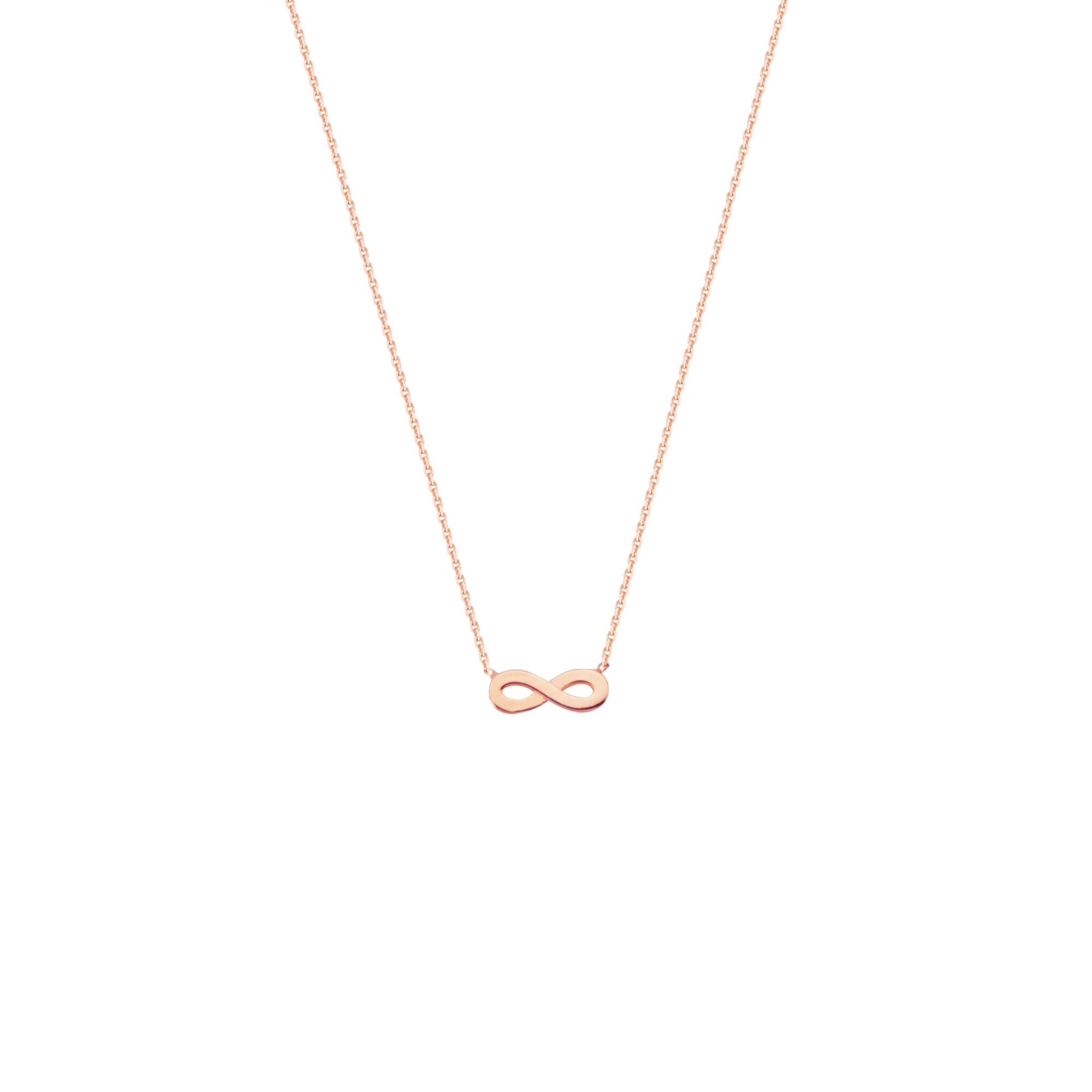 Fashion that lasts forever. This timeless 14kt Pink Gold mini infinity necklace features a 16-18 adjustable diamond cut cable chain with lobster clasp.