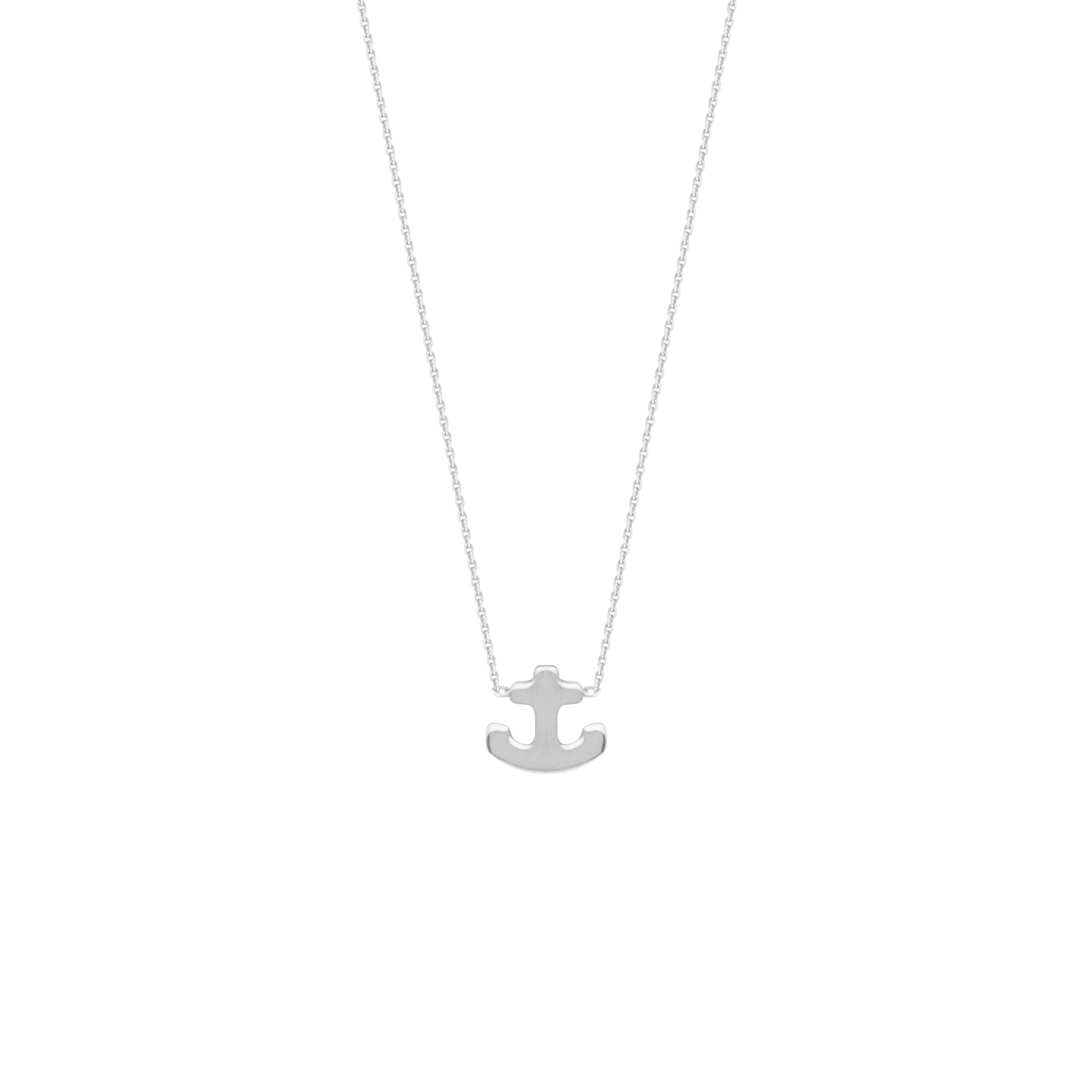 Keep your style grounded with this 14kt White Gold mini anchor necklace. Features an 16-18 adjustable diamond cut cable chain with lobster clasp.