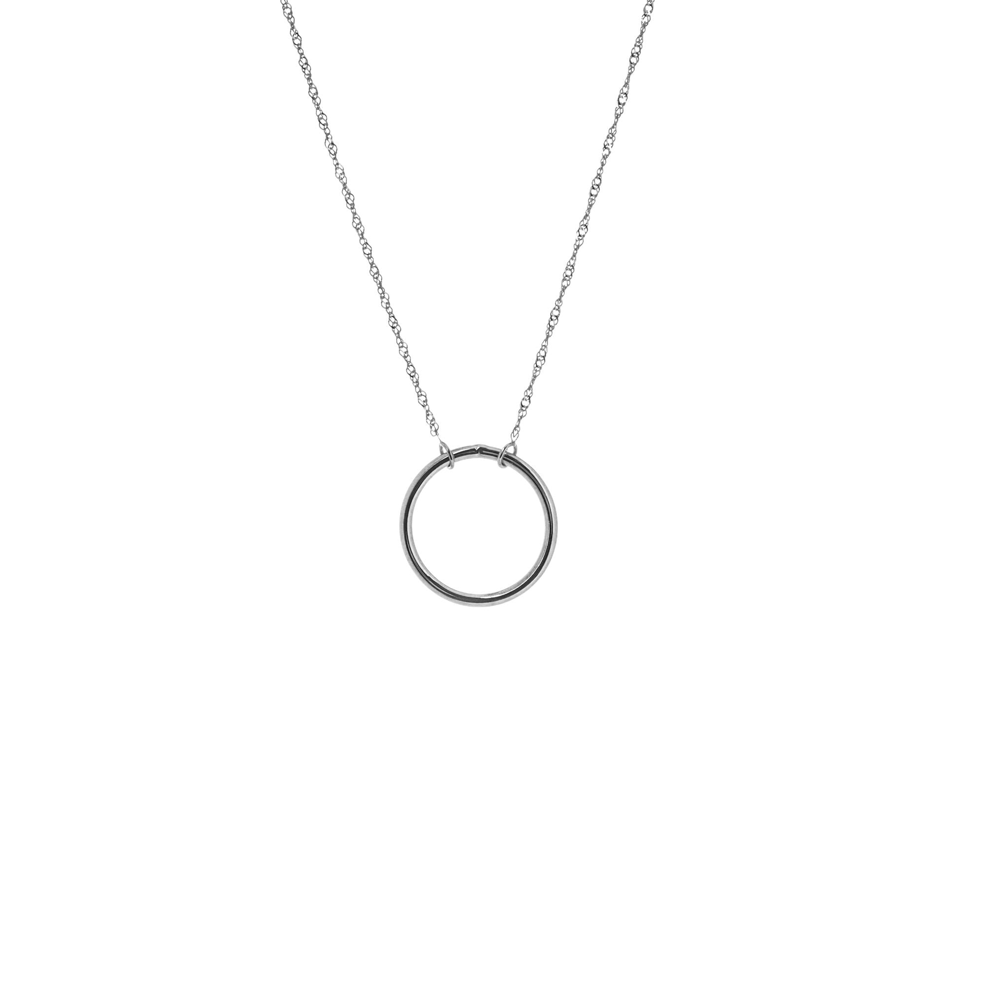 14kt White Gold Wire Circle Necklace. Adjustable 16-18 inches.