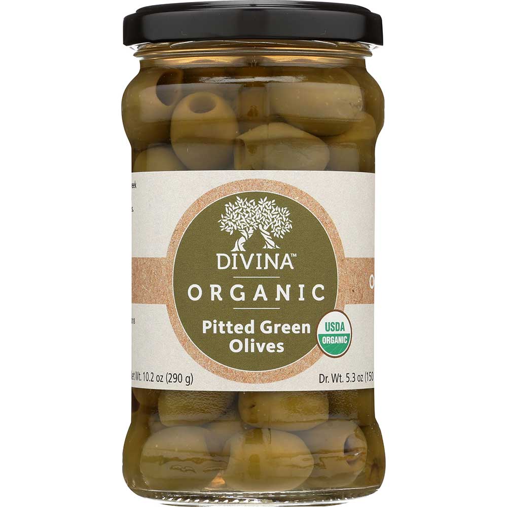 Divina Organic Pitted Green Olives, 6 Ounce/6 per case.