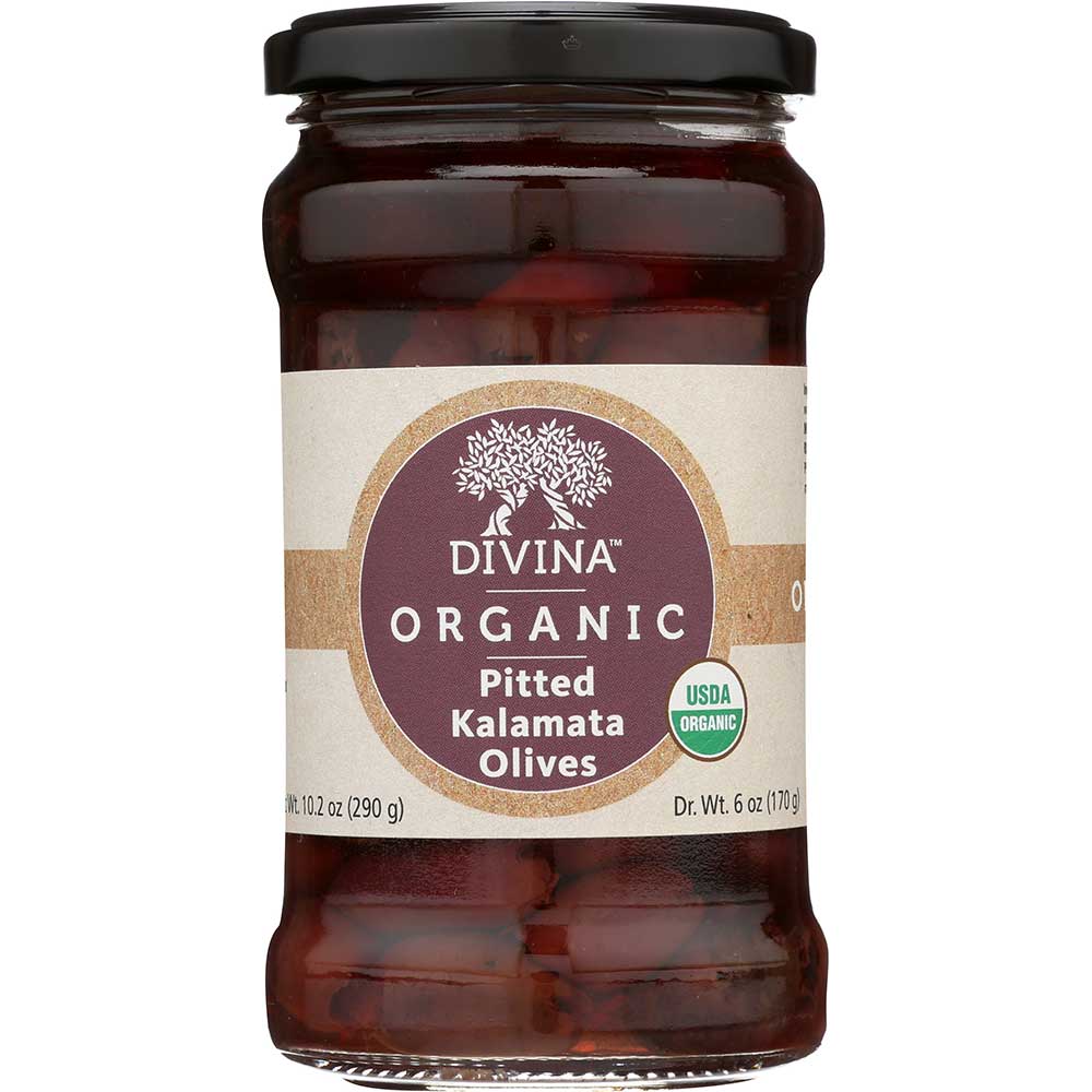 delicious; marinated; non-gmo; versatile;one 10.2 oz. Jar divina, olives, organic kalamata pitted