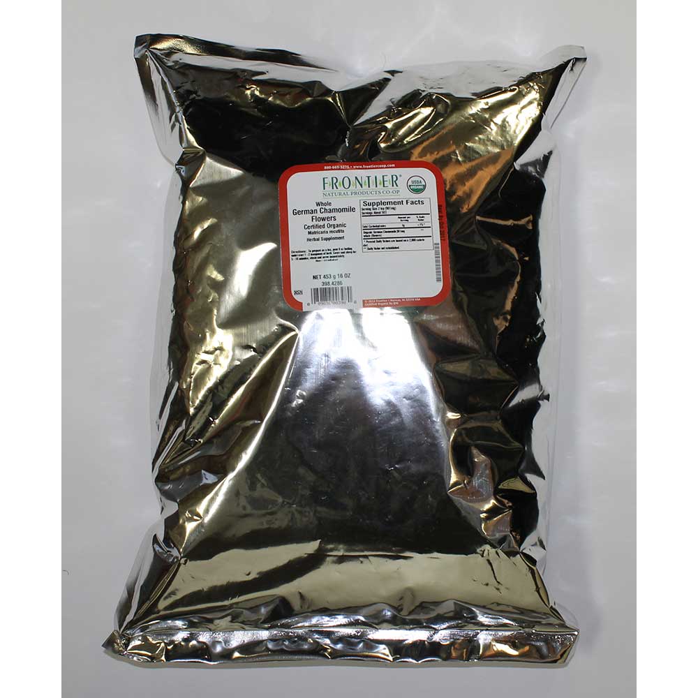 Certified organic; Kosher; non-irradiated; sourced from croatia;one 16 oz. Bag of frontier whole german chamomile flowers