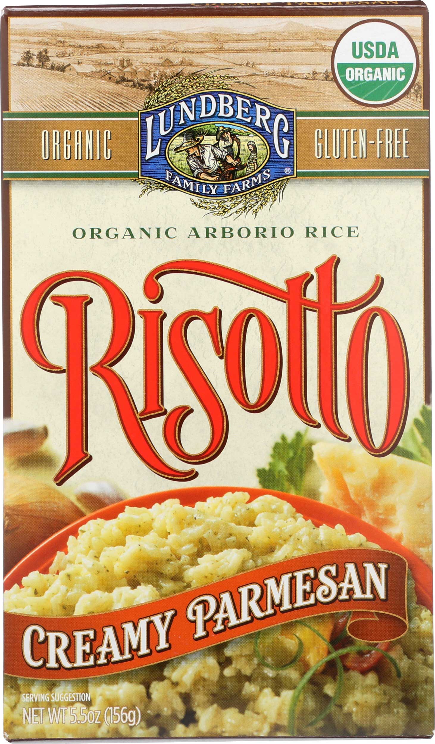 Lundberg Family Farms Organic Arborio Rice Risotto Has An Enjoyable, Delectable Flavor Of Rich, Aged Parmesan Cheese In This Elegant Italian-style Risotto. We Created This Gourmet Side Dish By Blending Quality Ingredients With Our Creamy Arborio Rice. Youll Love How The Individual Kernels Plump, Creating A Rich, Creamy Sauce While The Rice Grains Remain Separate And Al Dente. Since 1937, Lundberg Has Been Dedicated To Bringing The Best-tasting, Finest-quality Rice Products To Our Customers. Includes One 5.5 Oz. Box (about 3 Servings) Of Risotto.Gluten-free;made With 100 Percent Renewable Wind Energy;one 5.5 Oz. Box Of Lundberg Risotto;organic;sustainably Grown
