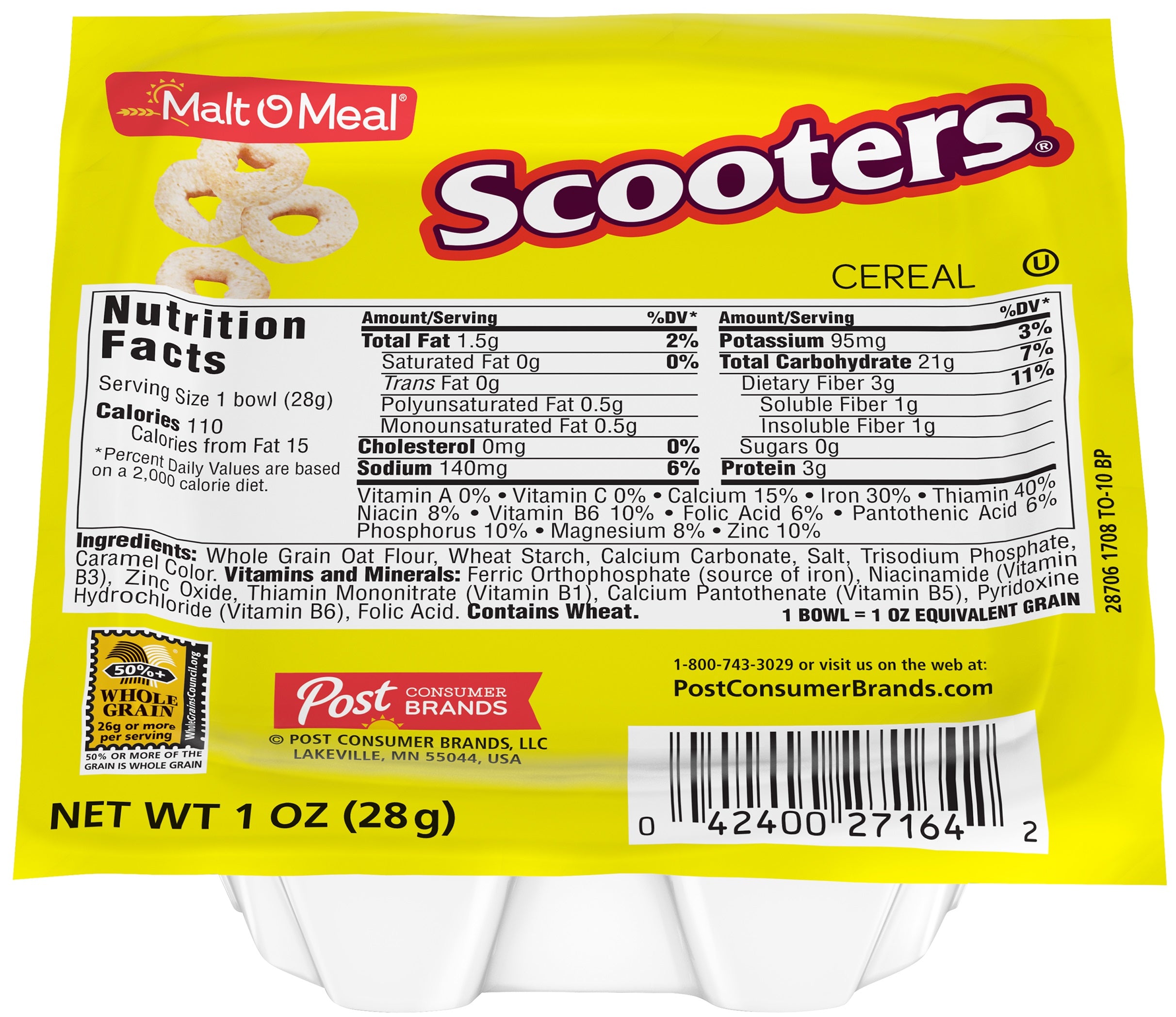 The Malt-O-Meal Scooters Cereal makes a delicious on-the-go snack. Made with whole grain oat flour, this crunchy cereal will make for an instant crowd favorite. The Malt-O-Meal cereal comes packed in small bowls for portion control. Ideal for serving as breakfast or a snack option, the bulk case will be a great buy for cafes, convenience stores, and supermarkets.