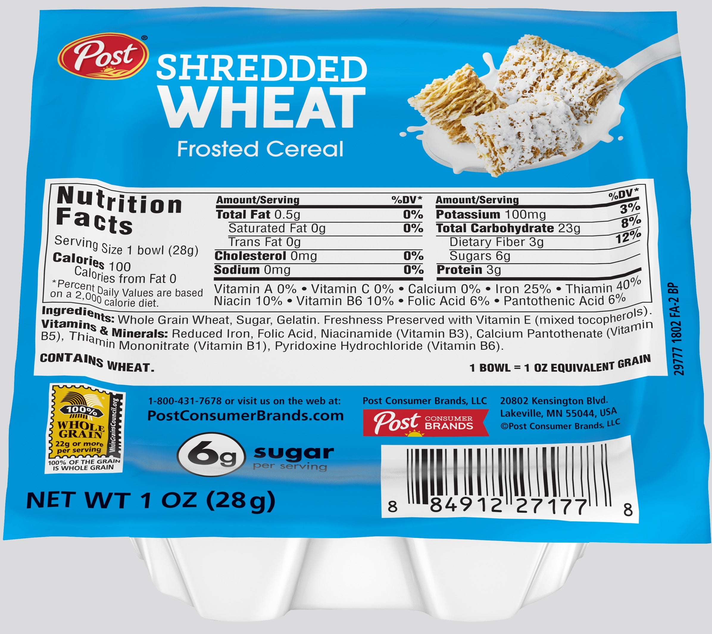 The Post Frosted Shredded Wheat Cereal offers the wholesome goodness of grains and is ideal for a healthy breakfast. This wheat cereal has shredded wheat biscuits with a yummy layer of frosting. Available in a bulk pack of 96 boxes per case, the Post shredded wheat cereal is ideal for restaurants, breakfast bars, and retail stores.