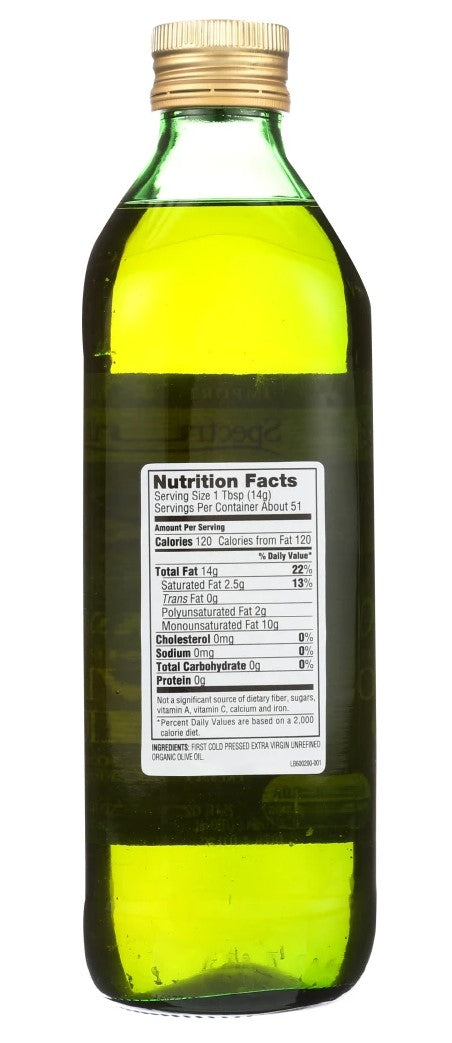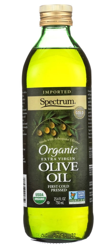 Spectrum naturals organic extra virgin olive oil is at the heart of the mediterranean diet- its pungent notes a sign of naturally occurring polyphenol antioxidants. Aromatic and smooth, our first cold pressed olive oil is made with hand-picked arbequina olives and certified usda organic. Non-gmo, certified Kosher, with zero cholesterol and trans-fats, spectrum olive oil offers the perfect balance of rich and mild flavors that are perfect for drizzling on salads or medium heat cooking. Includes one 25.4 oz. bottle of spectrum naturals organic extra virgin olive oil.
