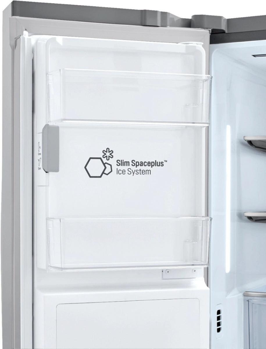 Slim SpacePlus® ice systemIcemakers are great, but not if it means you can't fit all of your food in the refrigerator. The Slim SpacePlus® ice system provides ample shelf space and allows for even more space for door bins.