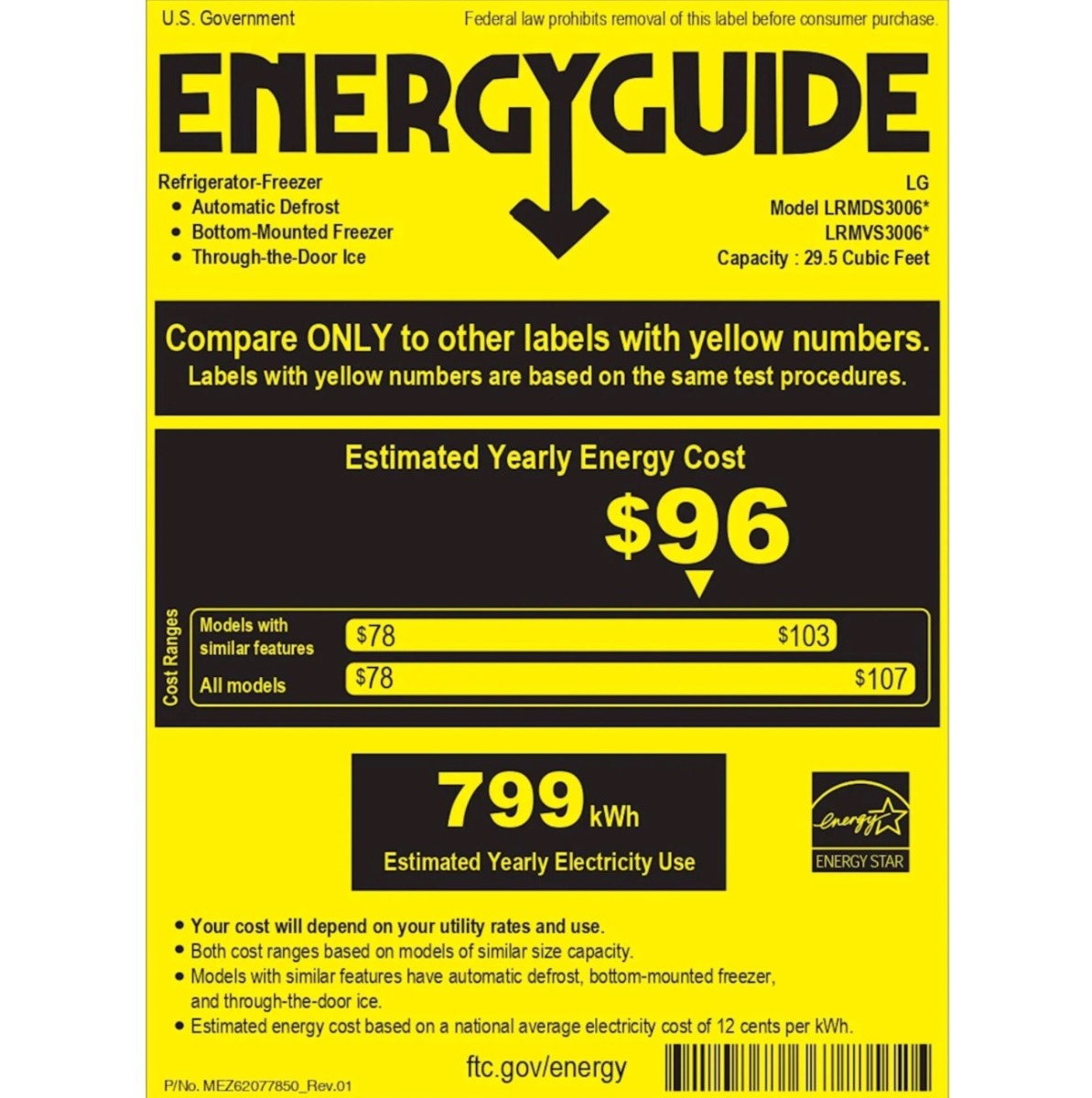 Save money, save energyThis ENERGY STAR® qualified LG refrigerator exceeds federal energy standards to positively impact your energy bill, your energy consumption, and most importantly, the environment.