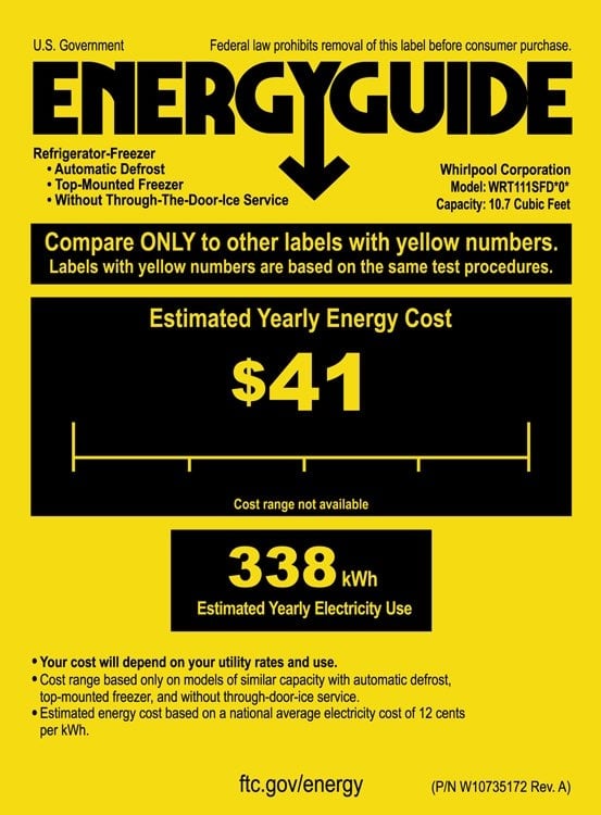 Whirlpool 11.0 Cu. Ft. Frost-Free Top-Freezer Refrigerator: Groceries stay chilled, accessible and organized with this Whirlpool refrigerator. The clear, glass shelves make it easy to spot food and clean up any spills.