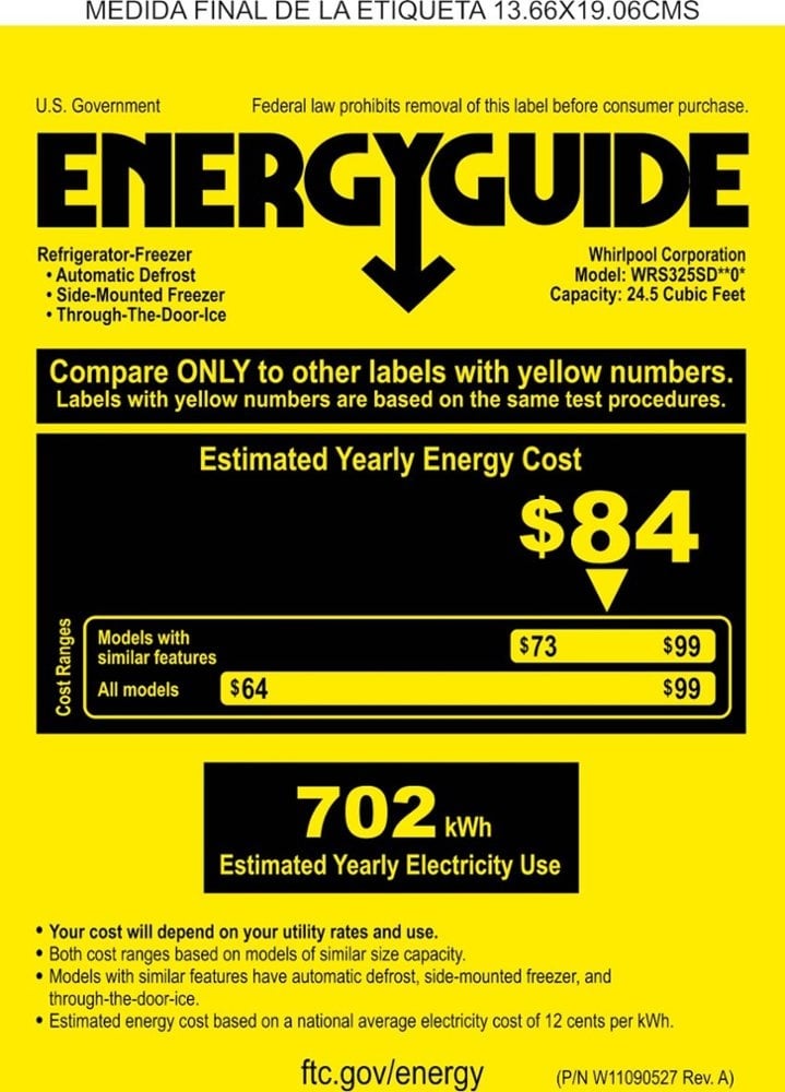 Store groceries and leftovers in this 35.5-inch Whirlpool side-by-side refrigerator. It has three adjustable glass shelves, so you can create your own configuration, and its humidity-controlled drawers keep your fruits and vegetables fresh and crisp. The stainless steel finish on this 24.55 cu. ft. Whirlpool side-by-side refrigerator protects it from fingerprints.