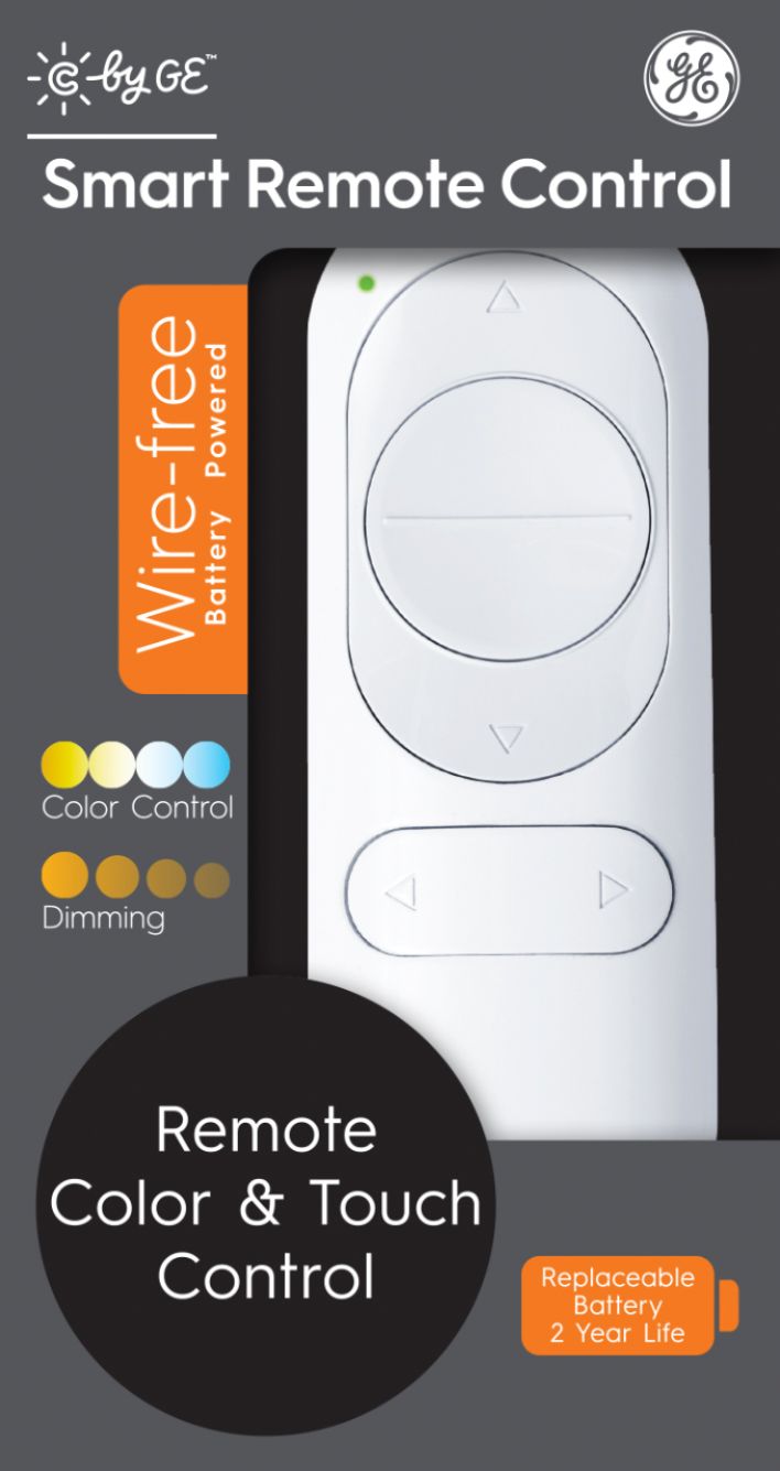 Control the lighting in your home in one touch with this C by GE wireless remote control. Bluetooth technology lets you pair and adjust a range of light settings, including white tones, from anywhere in the room. This C by GE wireless remote control has a magnetic back for easy placement on any metal surface.