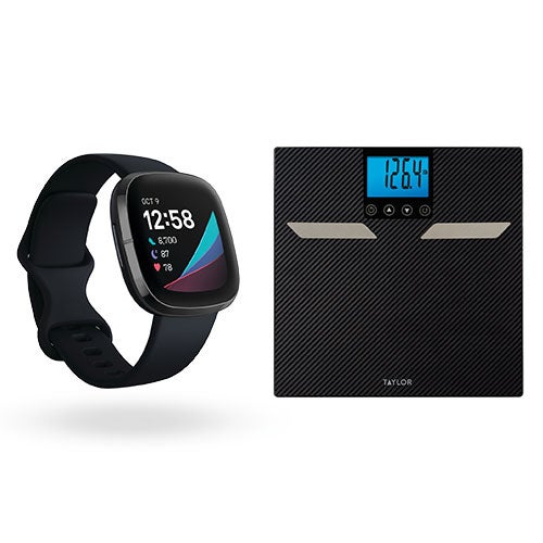 Sense 2 Advanced Health Smartwatch Shadow Gray. SpO2 (blood oxygen) tracking. ECG app - assess heart rhythm. Skin temperature sensor. Sleep Score & Stress Management Score. Built-in GPS. 6+ Day battery life. Small band fits wrists 5.5" to 7.1" in circumference. Large band fits wrists 7.1" to 8.7" in circumference. Body Composition Scale w/ Carbon Finish. Calculates BMI and estimates caloric intake through Cal-Max function. Includes 3 AAA batteries. Up to 440lb weight capacity.