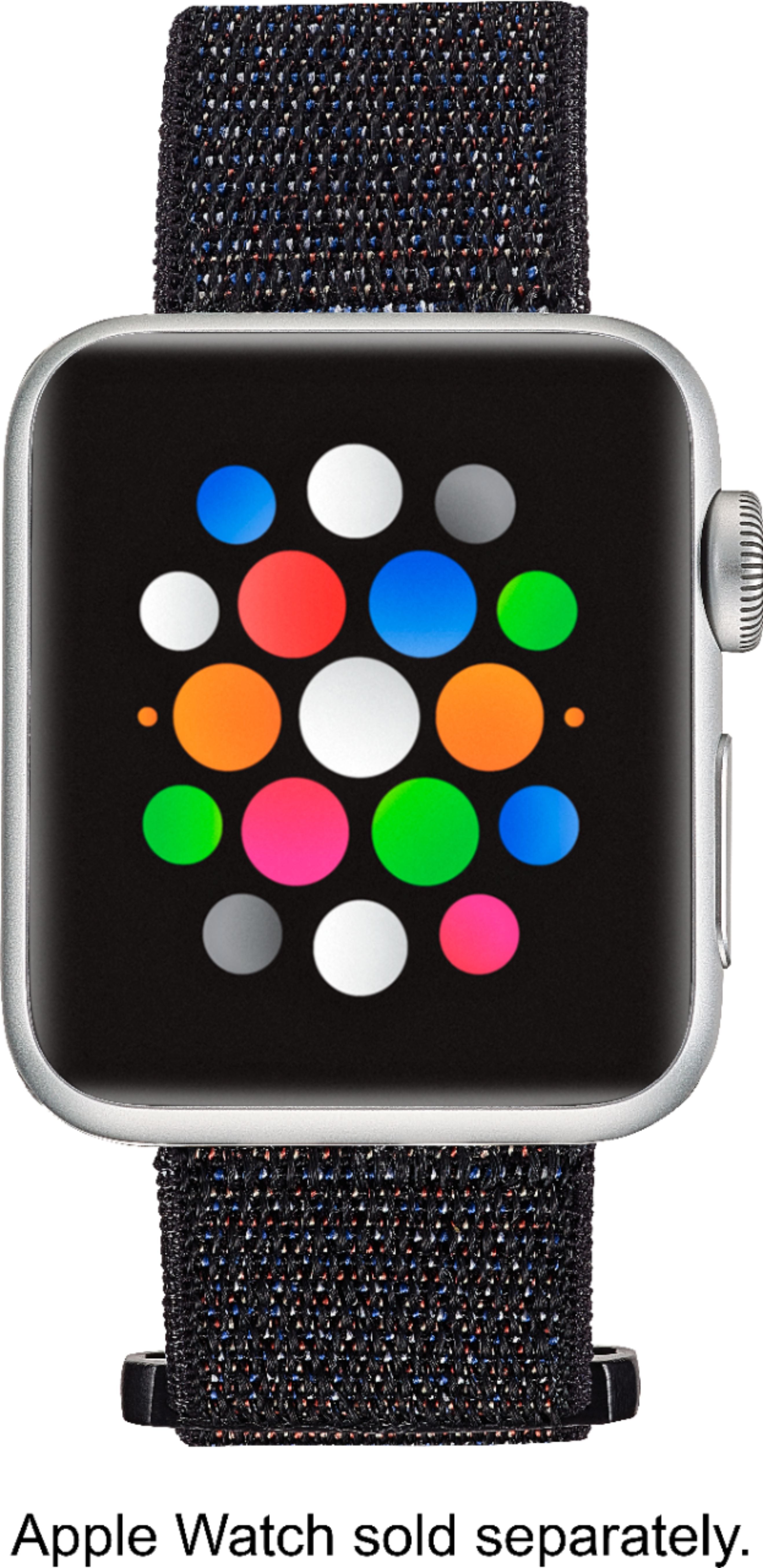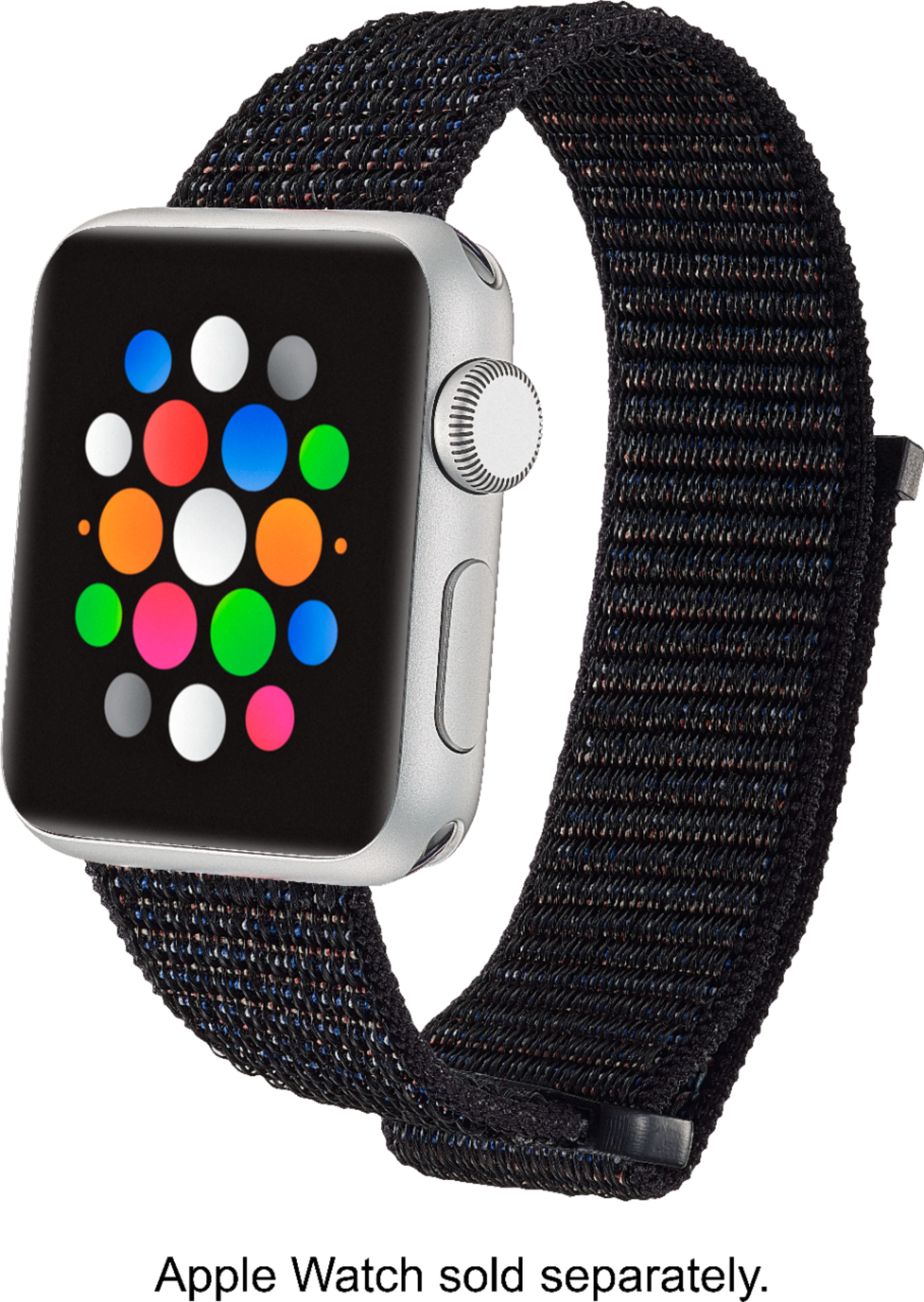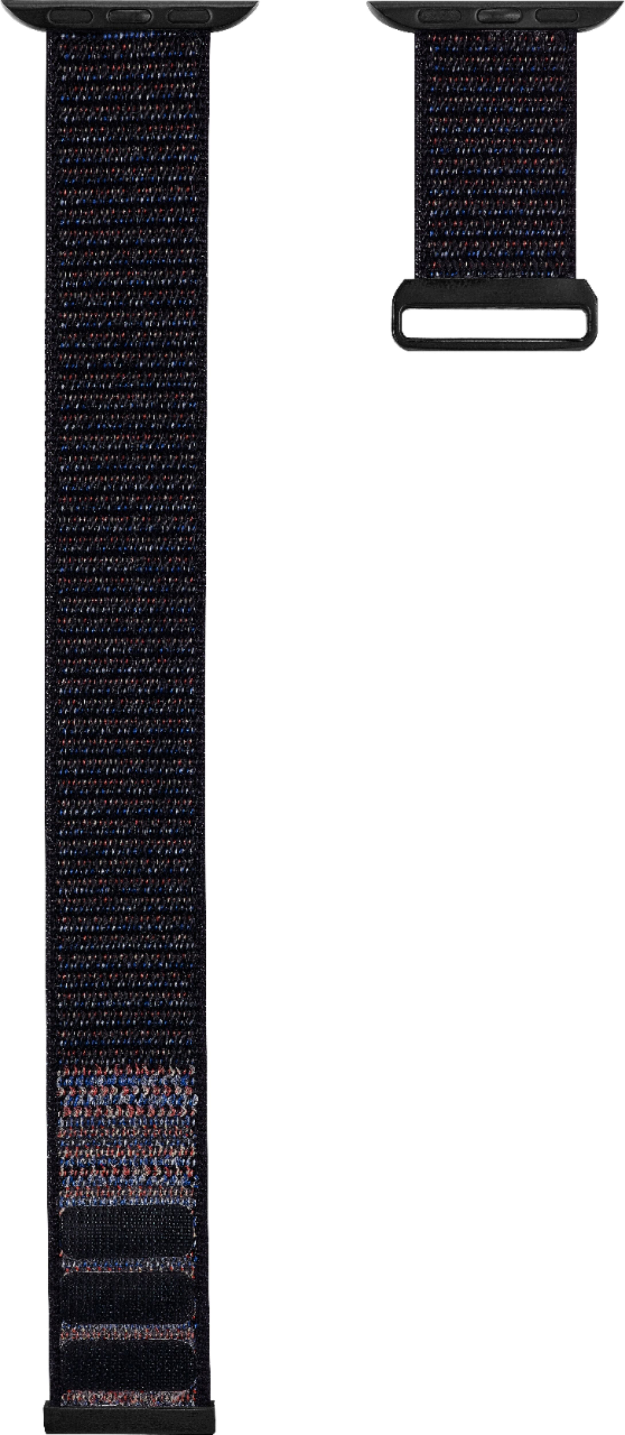 Take your smart watch to the gym with this black nylon Modal wristband. Its soft, water-resistant material remains comfortable during intense workouts, and the adjustable band's pull-through loop and Velcro closure create a snug fit. This Modal wristband securely supports any 38mm, 40mm and 41mm Apple Watch.