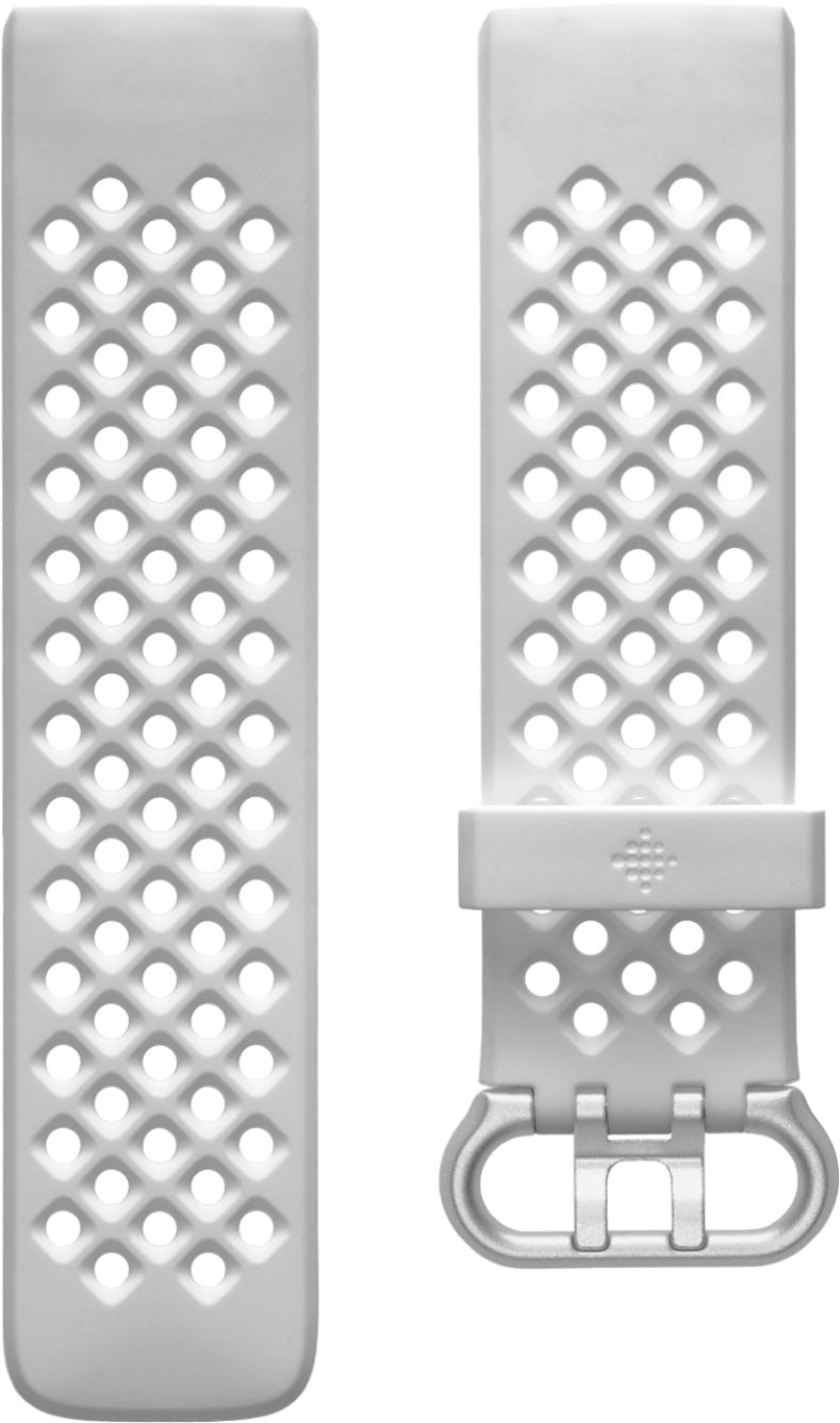 Tackle daily challenges seamlessly while training with this white Fitbit Charge 4 Sport accessory band. The soft silicone material offers reliable durability, and the aluminum double buckle delivers secure closure. This Fitbit Charge 4 Sport accessory band has large perforations for increased breathability and comfort, while the stain-resistant design ensures easy cleaning.