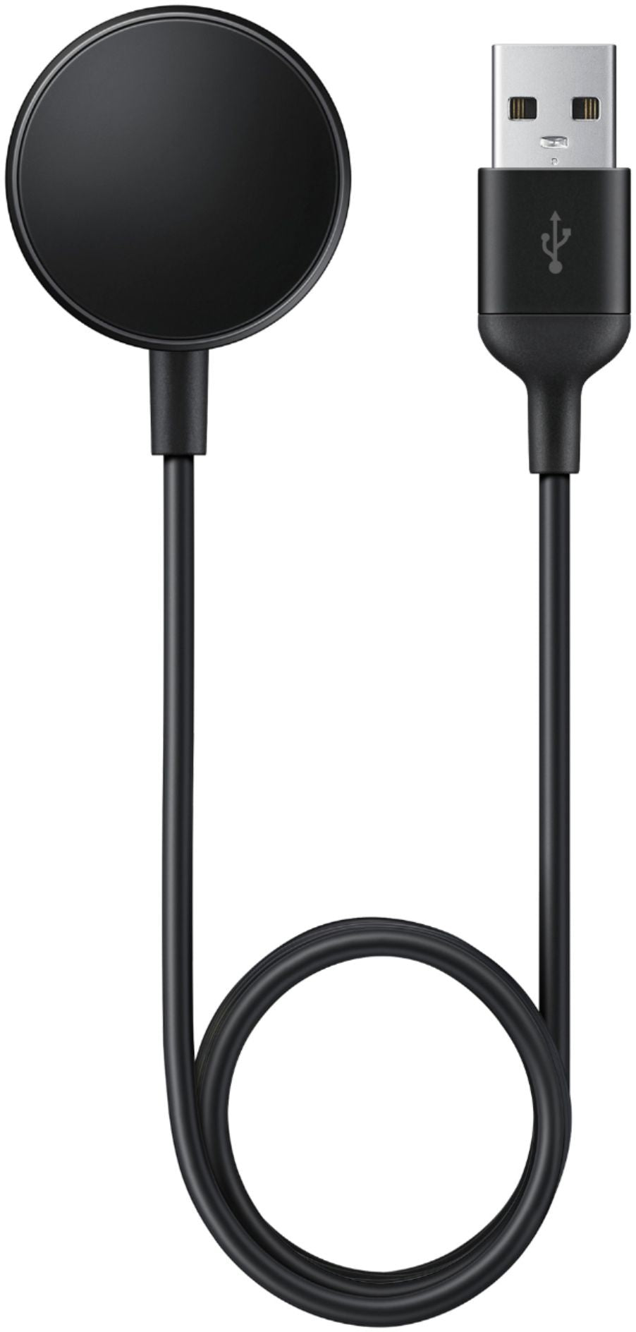 Keep your Galaxy Watch charged with this black Samsung Wireless charging pad. The USB connector plugs into a wide range of electronics for versatile connections, and the small, lightweight design fits into a backpack, suitcase or tote for easy transportation. This Samsung Wireless charging pad features molded strain relief for increased durability.