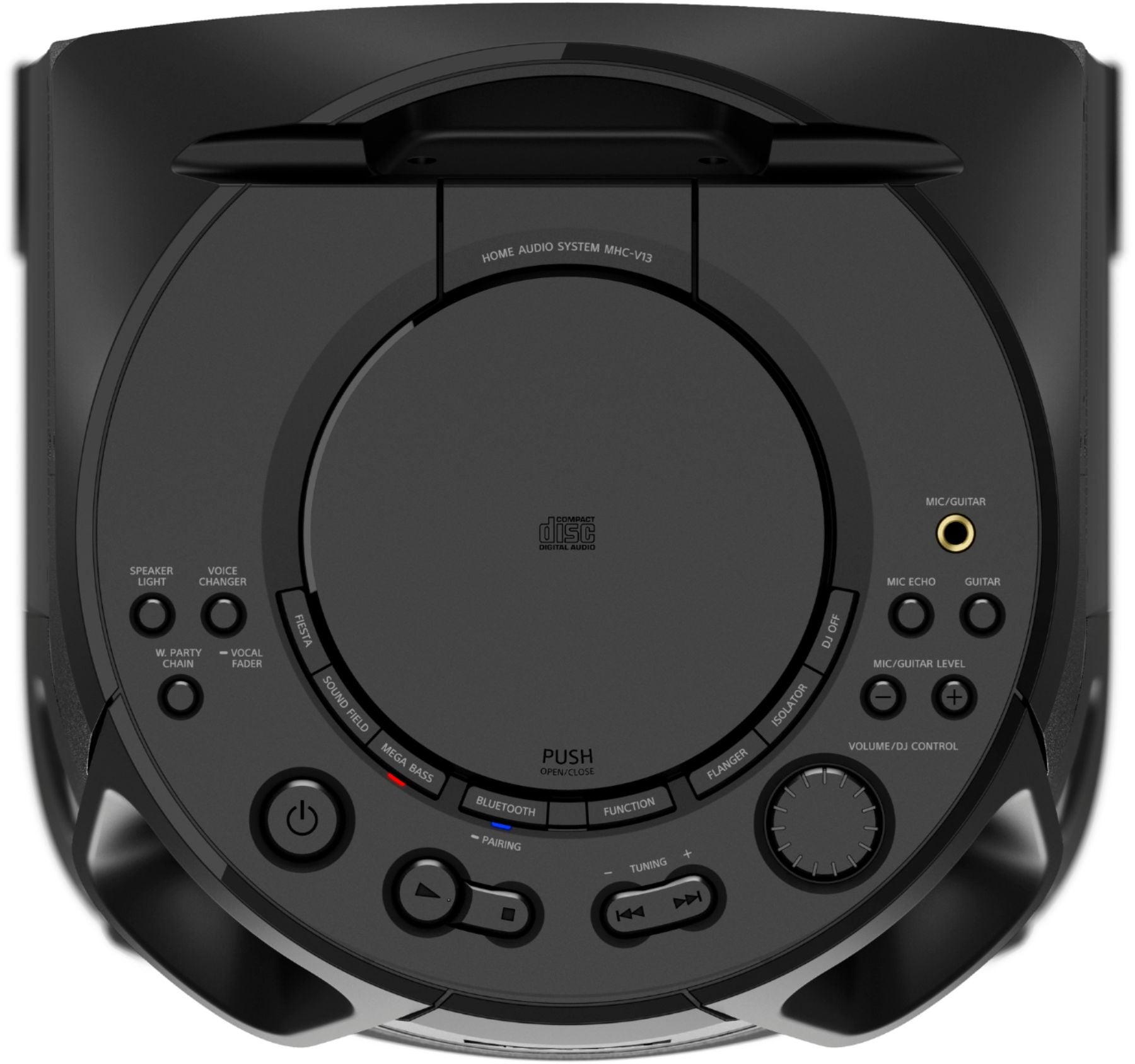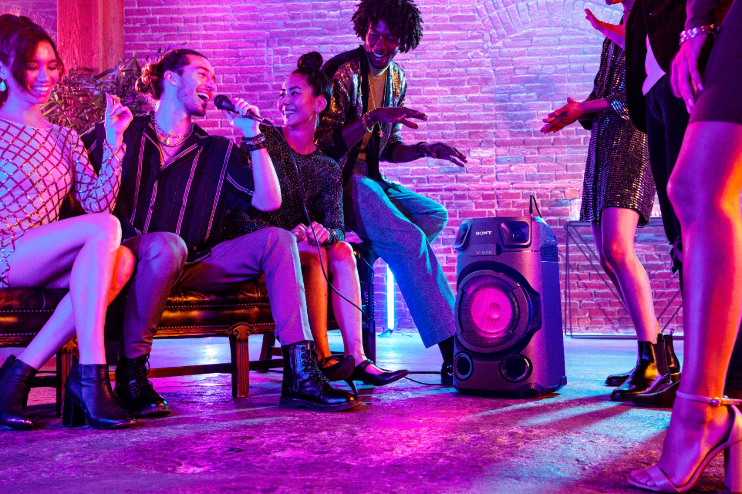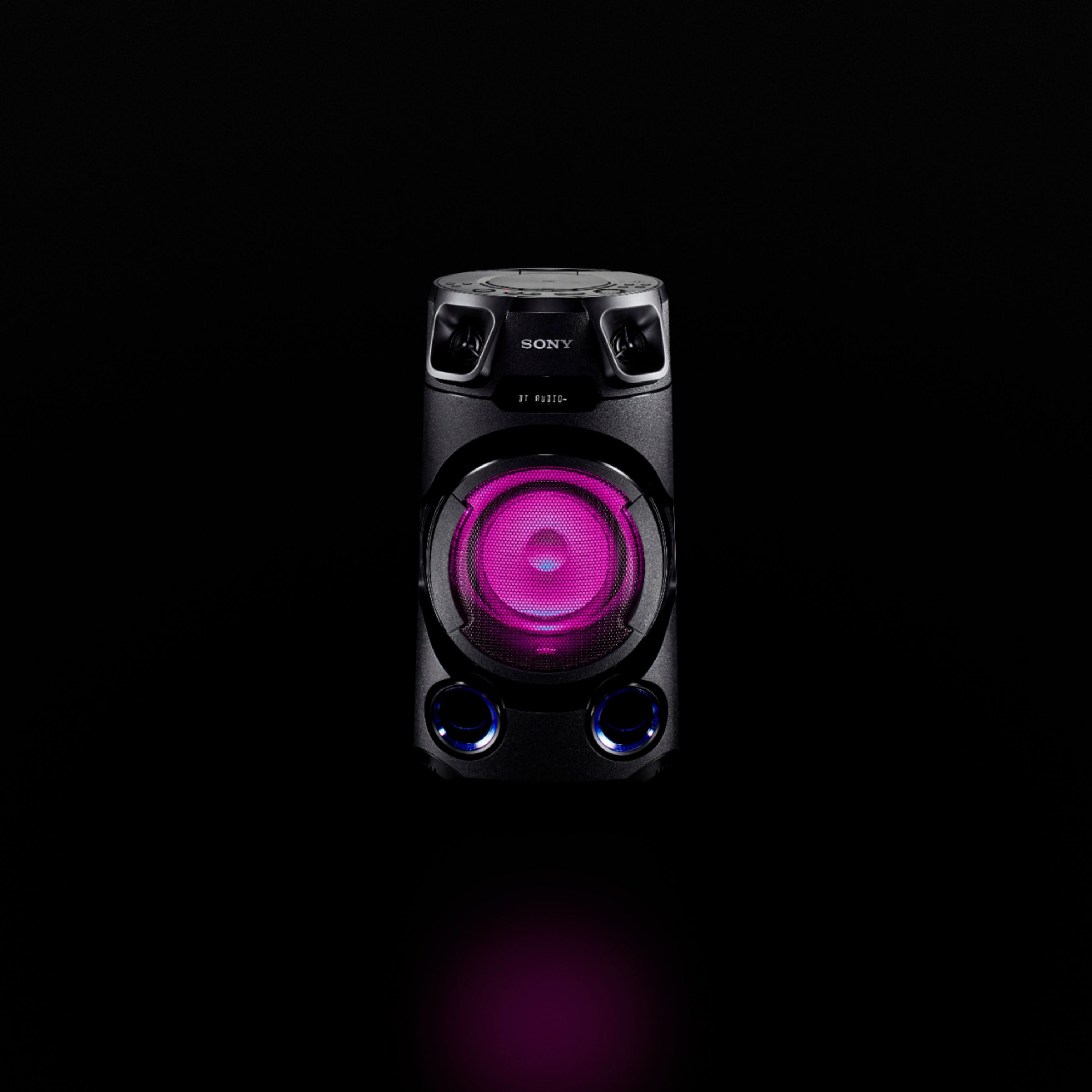 Feel the music with the JET BASS BOOSTER and High-efficiency Tweeters inside the all-in-one MHC-V13 Home Audio System. Make the party yours with a speaker light, Karaoke function, and more. New functions like Party Playlist and Karaoke Ranking via Sony