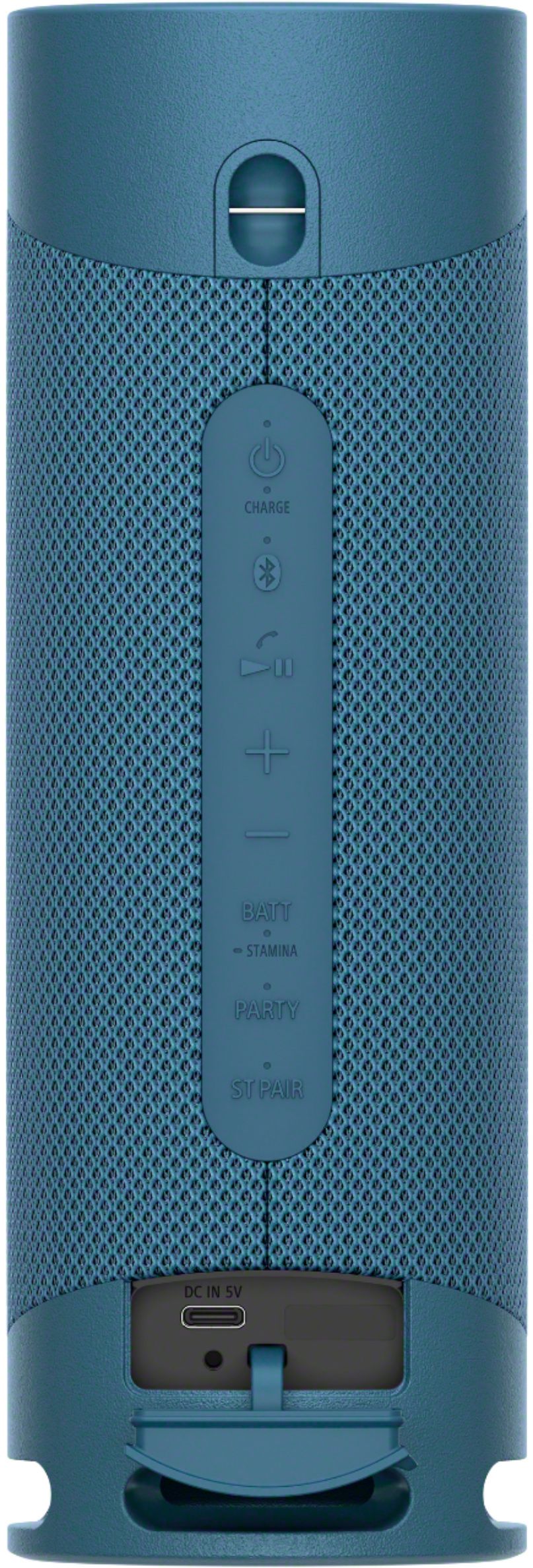 Enjoy powerful sound during outdoor parties from this blue Sony EXTRA BASS portable Bluetooth speaker. The rechargeable battery offers up to 12 hours of use while the waterproof and dustproof design provides durability. This Sony EXTRA BASS portable Bluetooth speaker has full-range drivers which deliver crisp well-balanced audio and the lights sync with the beat for a brilliant show.