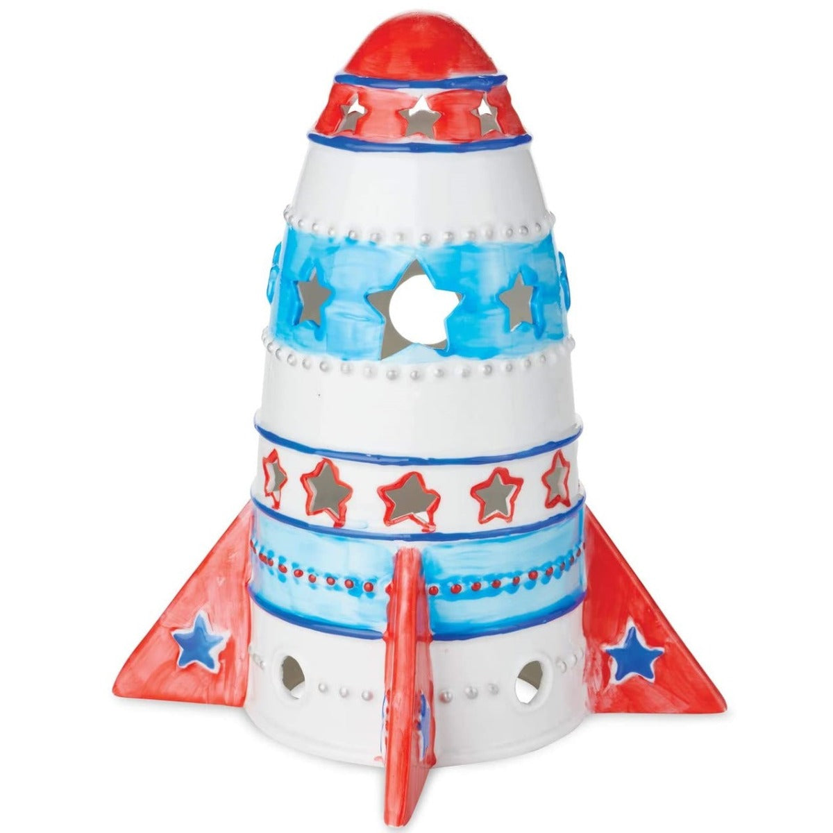 The Porcelain Rocket Light can be customized with colorful paints and then used as a friendly night-light or to add a warm glow to a favorite spot. It?s a fun and usable craft for kids that also makes a great gift! Ages 8 and up.