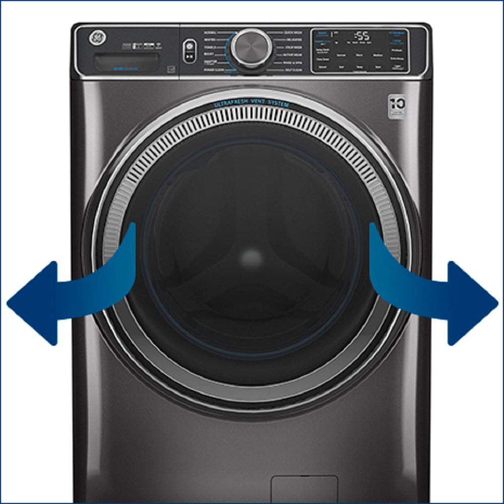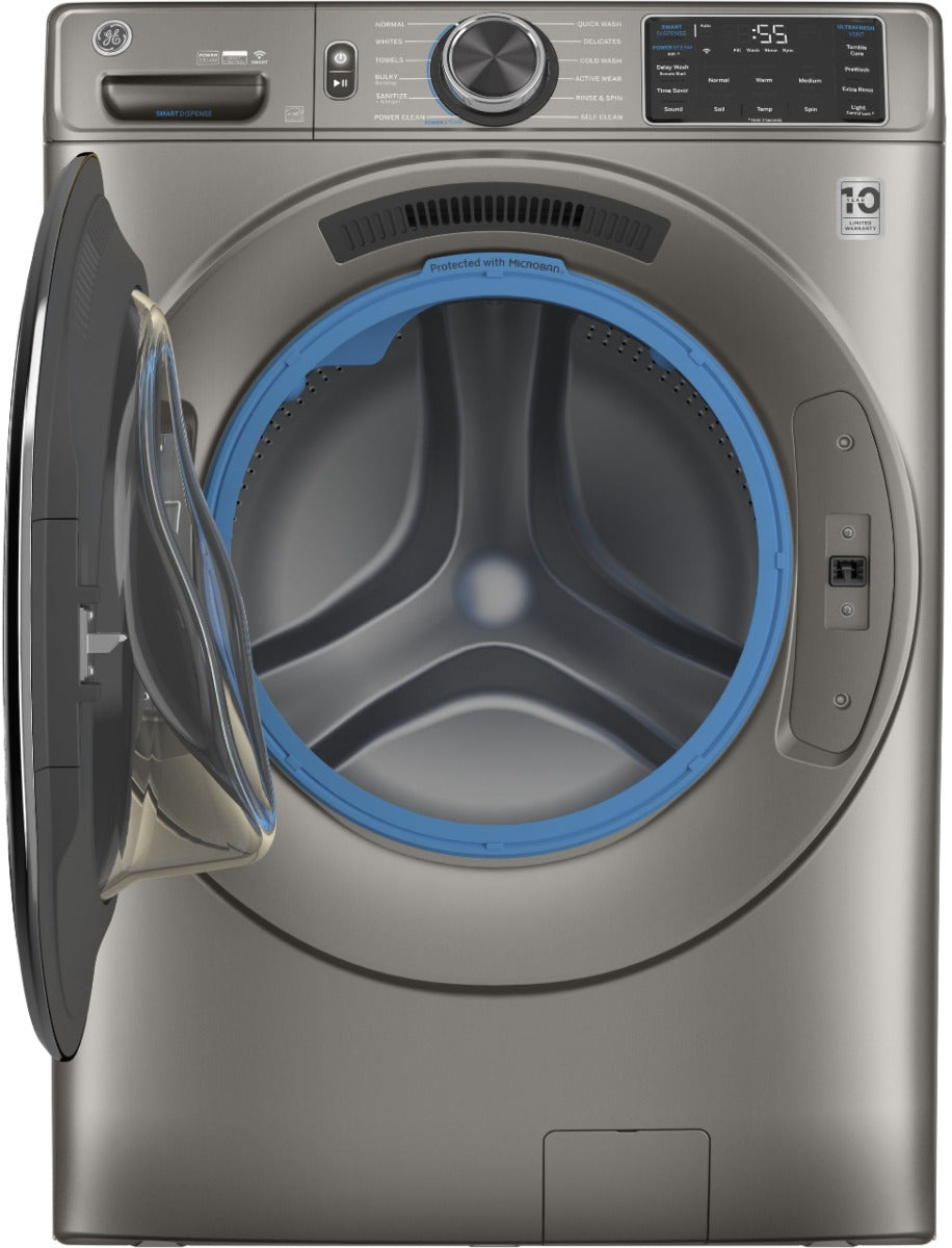 (1) x *GE - 4.8 Cu Ft High-Efficiency Stackable Smart Front Load Washer w/UltraFresh Vent, Microban Antimicrobial & SmartDispense - Satin Nickel