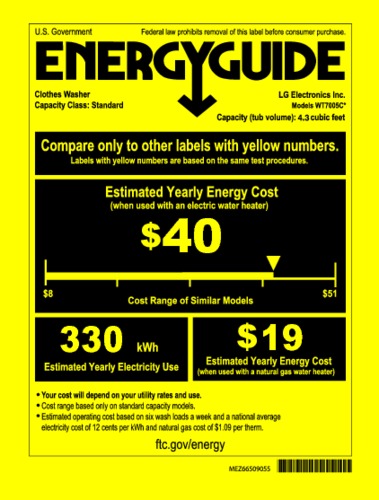 ENERGY STAR® CertifiedThis LG high efficiency washer uses far less water and energy than a conventional washer for savings that add up with each load. Get additional savings with load-sensing technology that adjusts water levels and wash times or by adding the ColdWash™ option to almost any cycle.