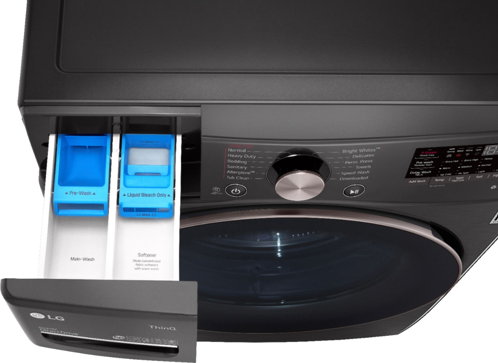 | (1) x *LG - 4.5 Cu. Ft. High Efficiency Stackable Smart Front-Load Washer with Steam and Built-In Intelligence - Black steel |
