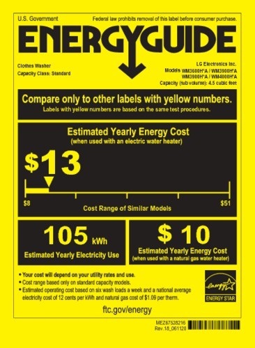 *Based on independent testing comparing models WM4500, WM4200, or WM4000 and WM3900 in normal cycle with TurboWash™ Option, 10 lb. load (June 2020).