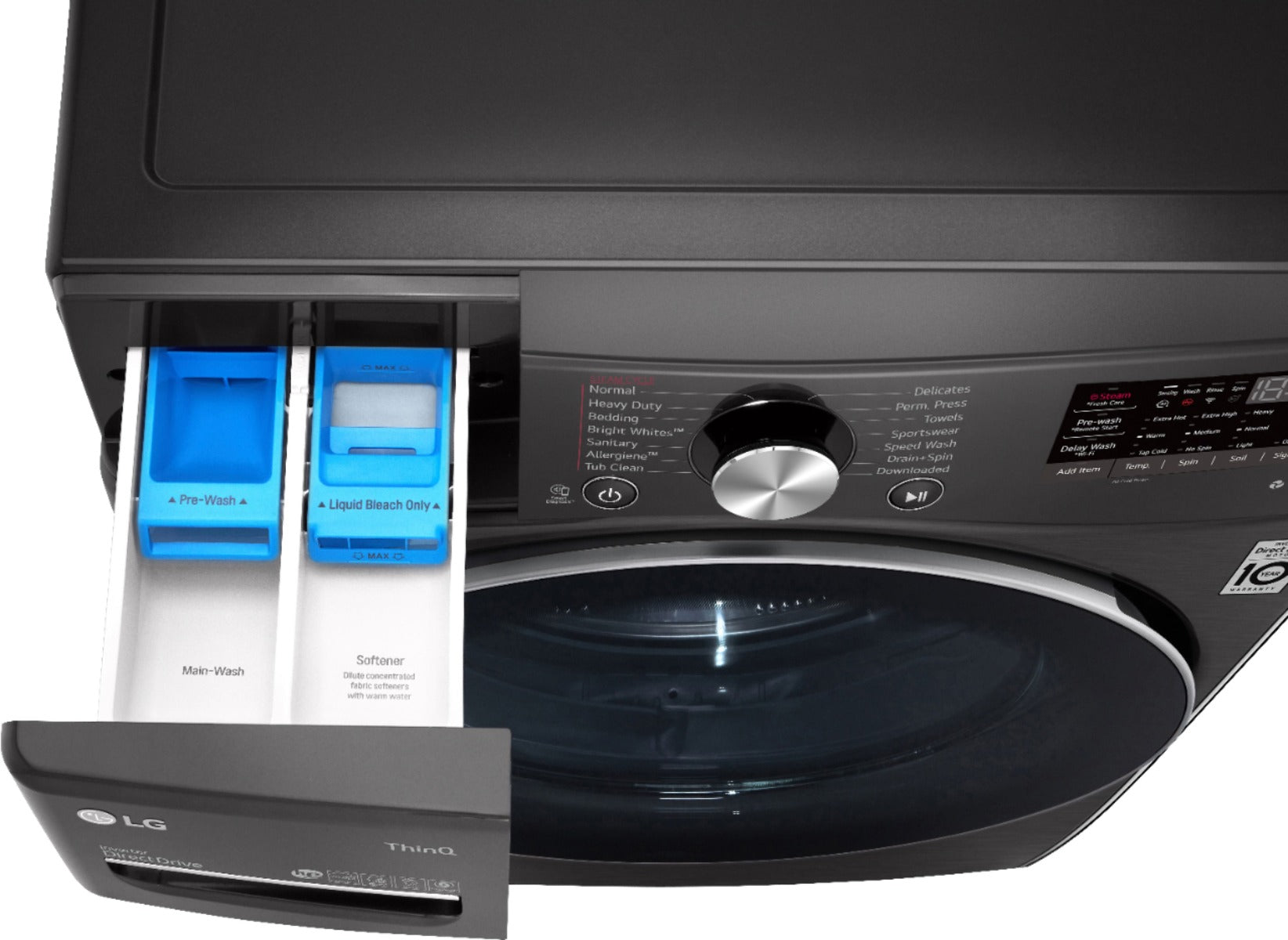 | (1) x *LG - 5.0 Cu. Ft. High Efficiency Stackable Smart Front-Load Washer with Steam and Built-In Intelligence - Black steel |