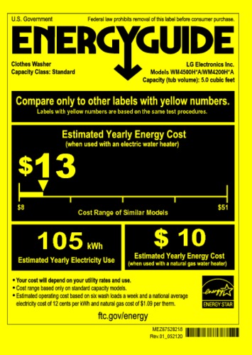 ENERGY STAR® CertifiedThis LG high efficiency washer uses far less water and energy than a conventional washer for savings that add up with each load.