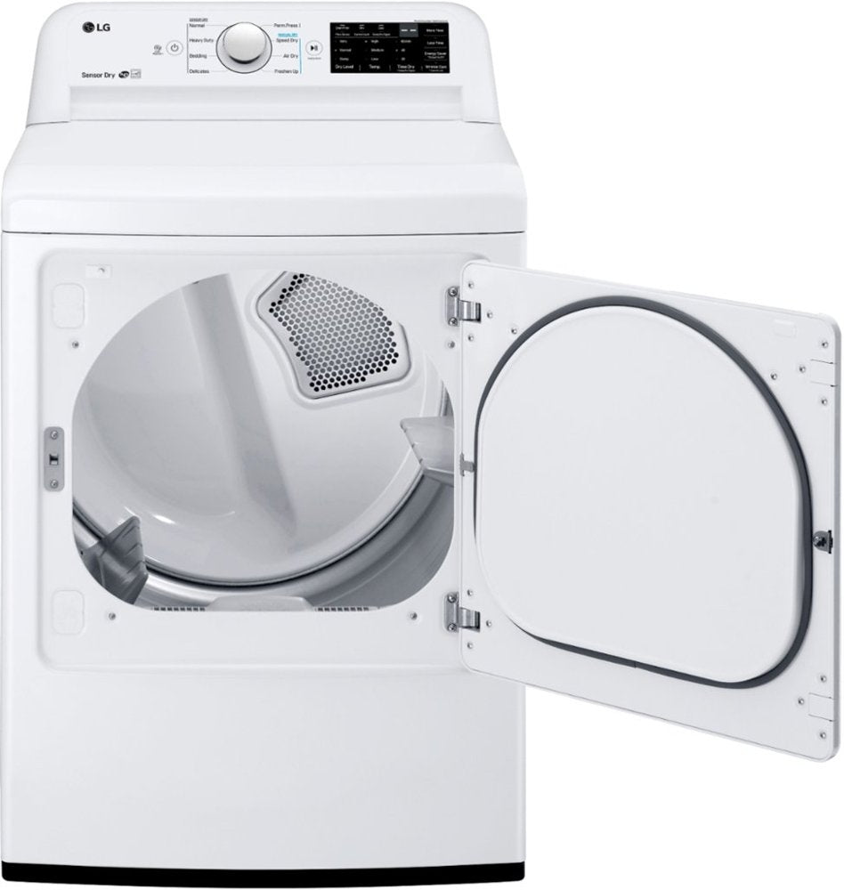 No one said laundry day was easy - but LG dryer innovations might just change your mind. It starts with the flexible LG EasyLoad door that opens two ways for easy loading and unloading. LG Sensor Dry system measures the amount of moisture levels throughout the cycle and automatically adjusts the drying time. All the more reason to take advantage of the 7.3 cu. ft. extra large capacity that handles really large loads. You'll save time and energy.