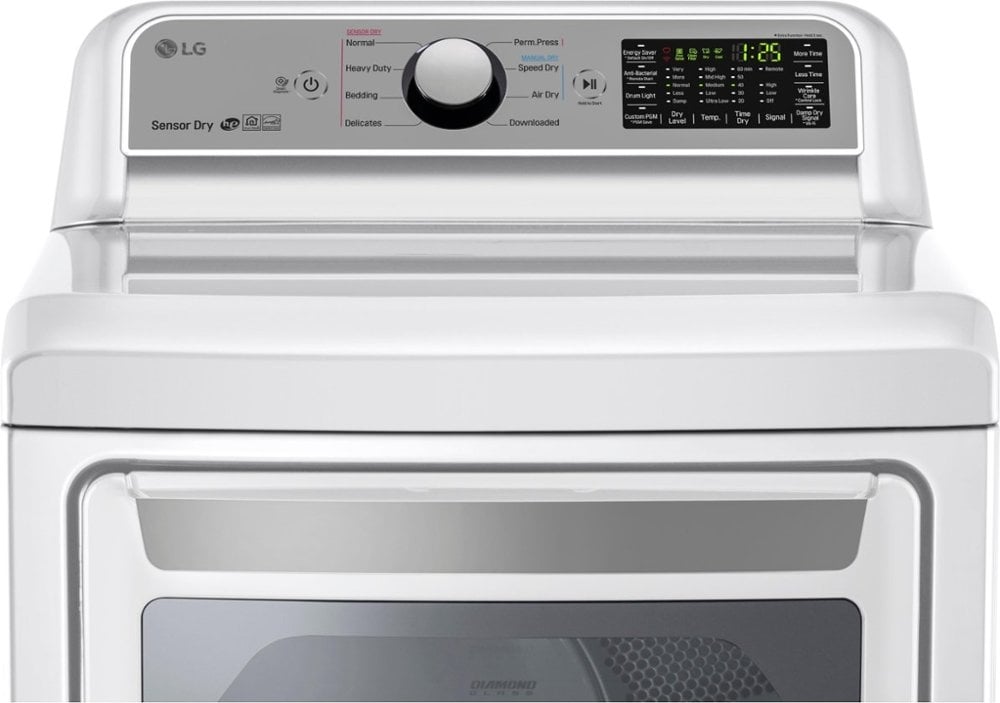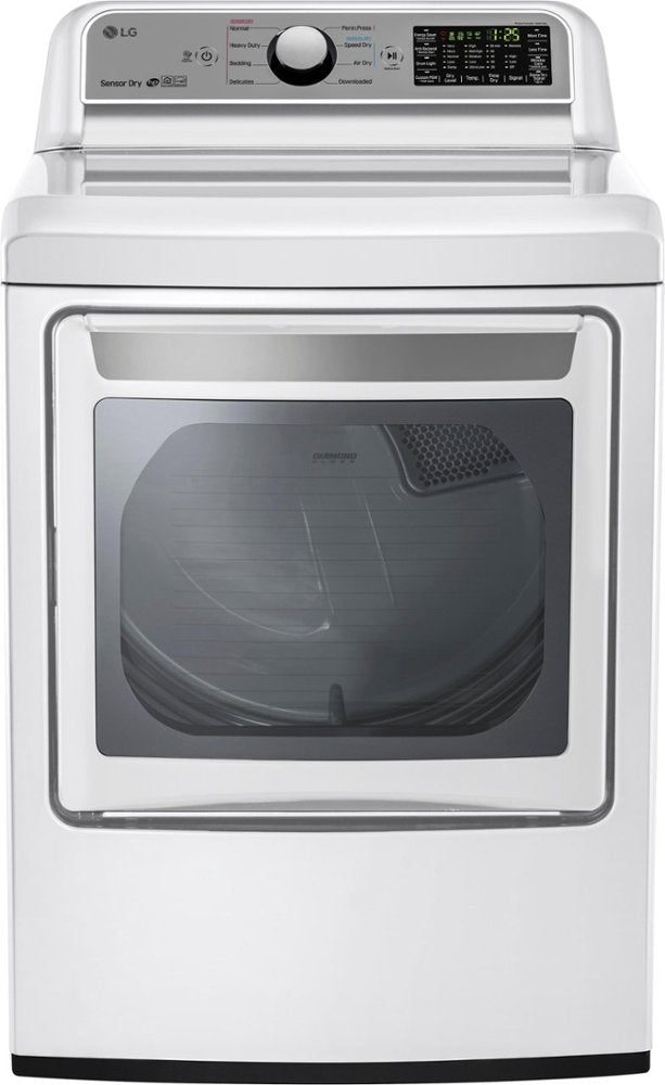Dry clothing rapidly with this LG high-capacity dryer. It has 7.3 cubic feet of space and nine drying programs so that you can complete your laundry loads as needed, and advanced sensors stop the dryer when your clothing is dry enough to save energy. An easy-to-use console on this LG high-capacity dryer ensures efficiency of operation.