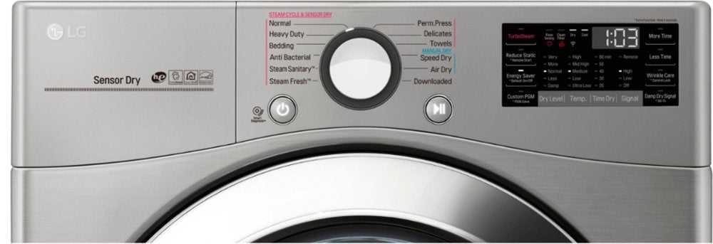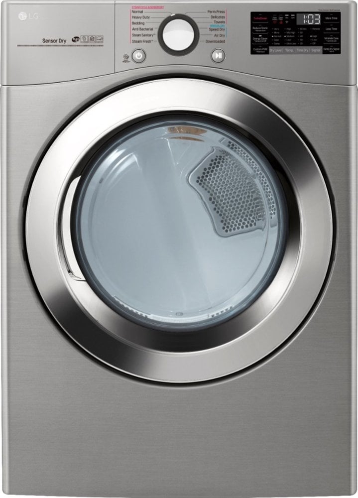 Ultra large capacity (7.4 cu. ft.) means you have the room to do more laundry in fewer loads. TrueSteam Technology generates real steam to reduce wrinkles and odors, and practically eliminates the need for ironing. The Sensor Dry system measures the moisture levels during the cycle and automatically adjusts the drying time to help ensure you get dry laundry every time. Always forgetting to remove your laundry? No problem. Choosing the Wrinkle Care option periodically tumbles your laundry to keep clothes wrinkle free. Sometimes, you just don't have time to wait for a standard dry cycle. LG's Speed Dry Cycle is perfect for small loads and can have clothes dry in just 25 minutes.