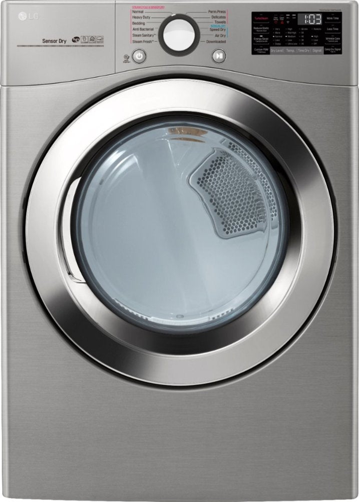 Dry your family's clothes quickly with this LG front load gas dryer. Ideal for large households , the 7.4 cu. ft. capacity lets you load more clothes and run fewer loads. This LG front load gas dryer features a speed dry cycle that dries small loads in 25 minutes and SmartThinQ technology for effortless smartphone control.