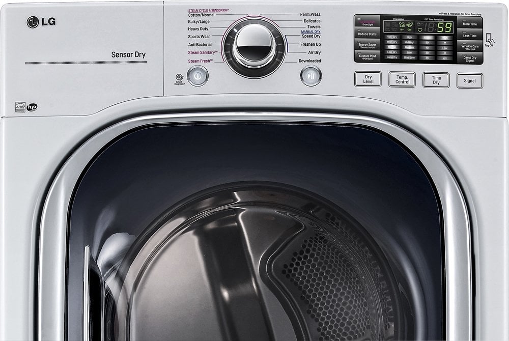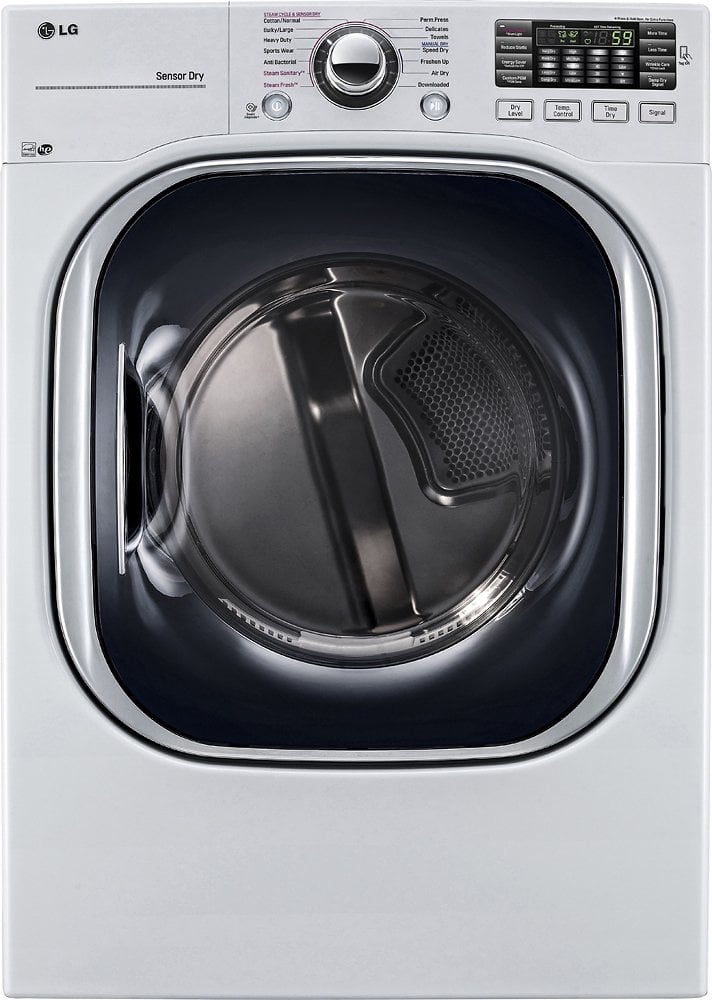 Dry your clothing without overheating or shrinking with the options on this LG electric dryer. The large-capacity dryer lets you dry big loads by time or type, taking the guesswork out of laundry day. This front-loading LG electric dryer is stackable with LG large-capacity washing machines to save on space in your laundry room.