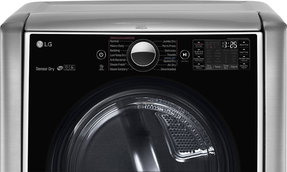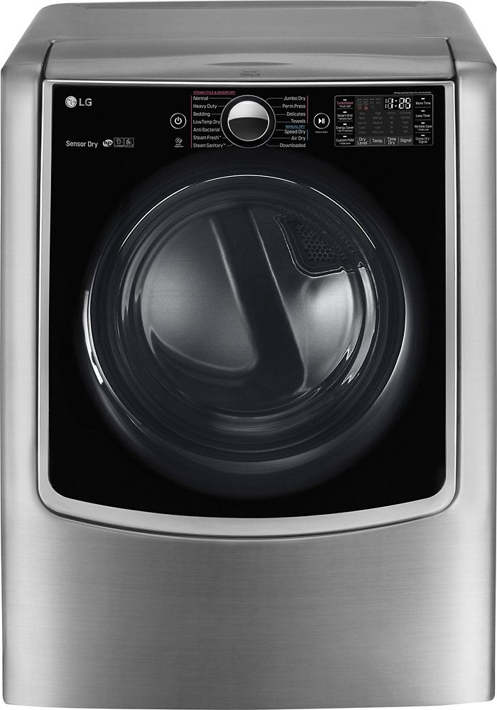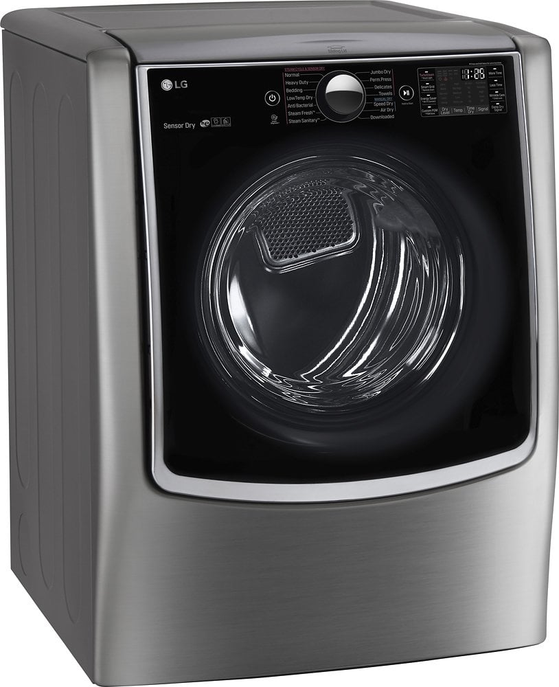 Get all your laundry done with this dryer, which offers a generous 9.0 cu. ft. interior to house large loads and a moisture sensor to help prevent overdrying. Smart ThinQ technology lets you remotely start the dryer and monitor the cycle with your smartphone. Plus, you can download special cycles, monitor energy usage and more. Dual LED digital controls make it easy to find the optimal setting for your fabrics. Discover LG's innovative TWIN Wash system and SideKick pedestal washer that let you tackle two loads of laundry at the same time.
