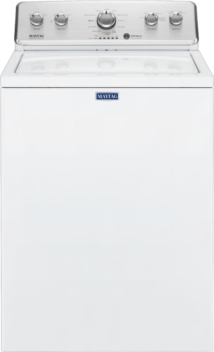 Simplify laundry day with this Maytag top-loading washer. Its 3.8 cu. ft. capacity is large enough to handle everything in your hamper, and its PowerWash agitator cleans loads efficiently to eliminate stains. This Maytag top-loading washer has an Auto Sensing function for automatic adjustment of the water level, and its Quick Wash cycle helps you save time.