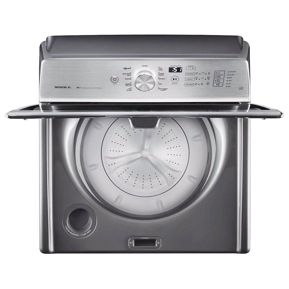 Top-load designLets you load and unload from a standing position. Plus, you can easily add forgotten items to the load once it's started.