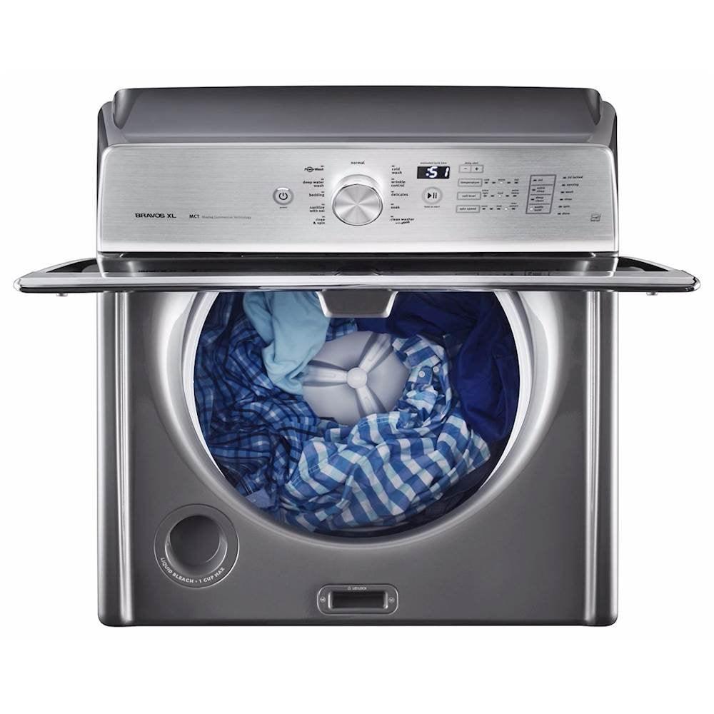 Care for your family's clothing in this Maytag top load washer, which features an extra-large capacity to handle heavy loads. Power Impeller technology ensures clean clothes with reverse wash motion, and a Deep Clean option catches all dirt. Five speed selections on this Maytag top load washer deliver optimal cleaning of delicates on up to towels.