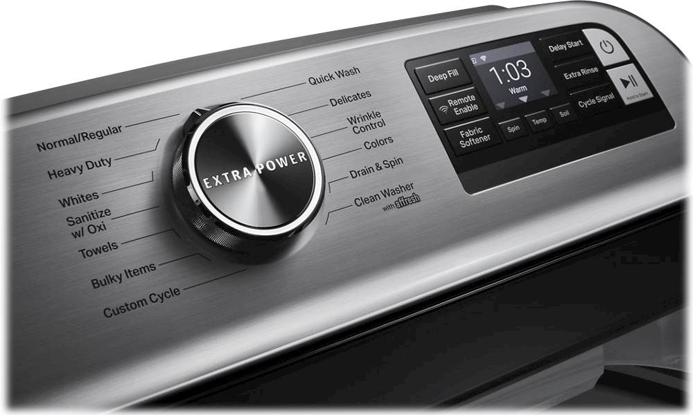 Get the heavy-duty washing machine that delivers powerful cleaning driven by the Heavy Duty cycle with Extra Power button. The Extra Power button boosts stain fighting on any wash cycle, including the Quick Wash cycle. Optional smart washer features such as remote start and cycle notifications help you efficiently manage laundry from anywhere.