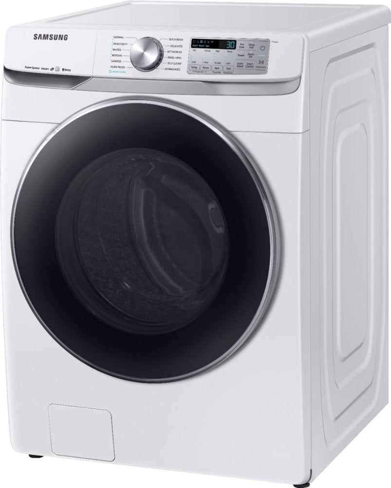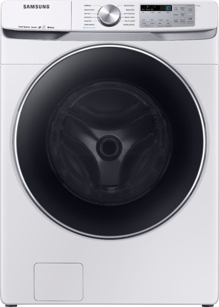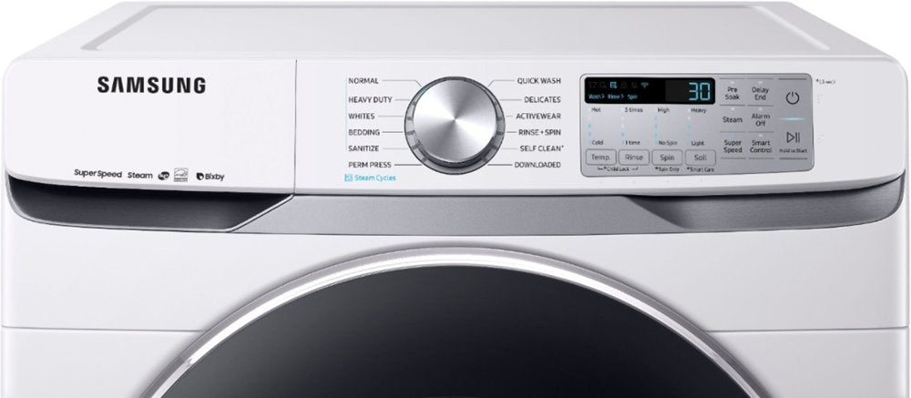 Samsung's new 4.5 cu. ft. capacity front-load washer featuring Super Speed allows you to wash a full load of laundry in just 30 minutes, without sacrificing cleaning performance. With Bixby enabled Wi-Fi connectivity, this washer allows you to remotely start or stop your cycle, schedule laundry on your time, receive end of cycle alerts, and more right from your smartphone. With Steam cleaning, you can eliminate stains without the need to pretreat.