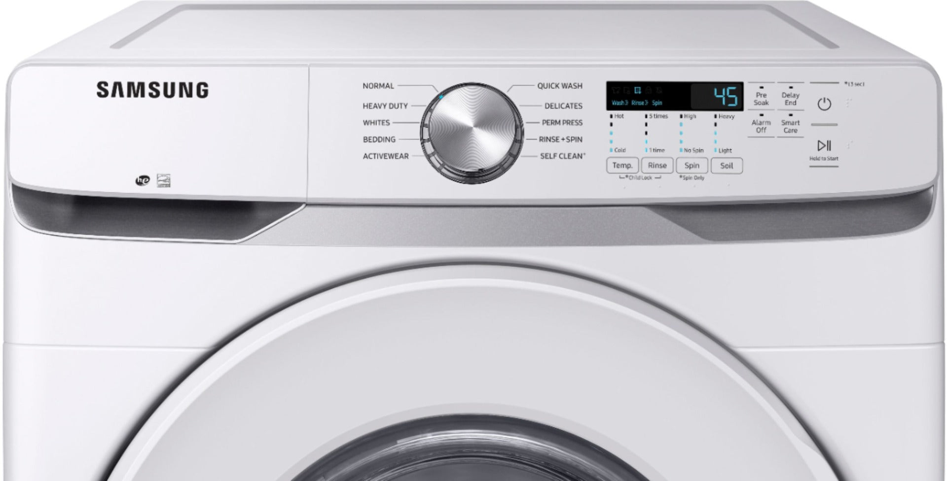 Samsung’s Energy Star® Certified Front Load washer has 4.5 cu. ft. capacity to fit more in every load and cut down on laundry time. It is equipped with Vibration Reduction Technology+ to reduce noise for quiet washing and features Self Clean+ to eliminate 99% of bacteria that can form in the drum.1