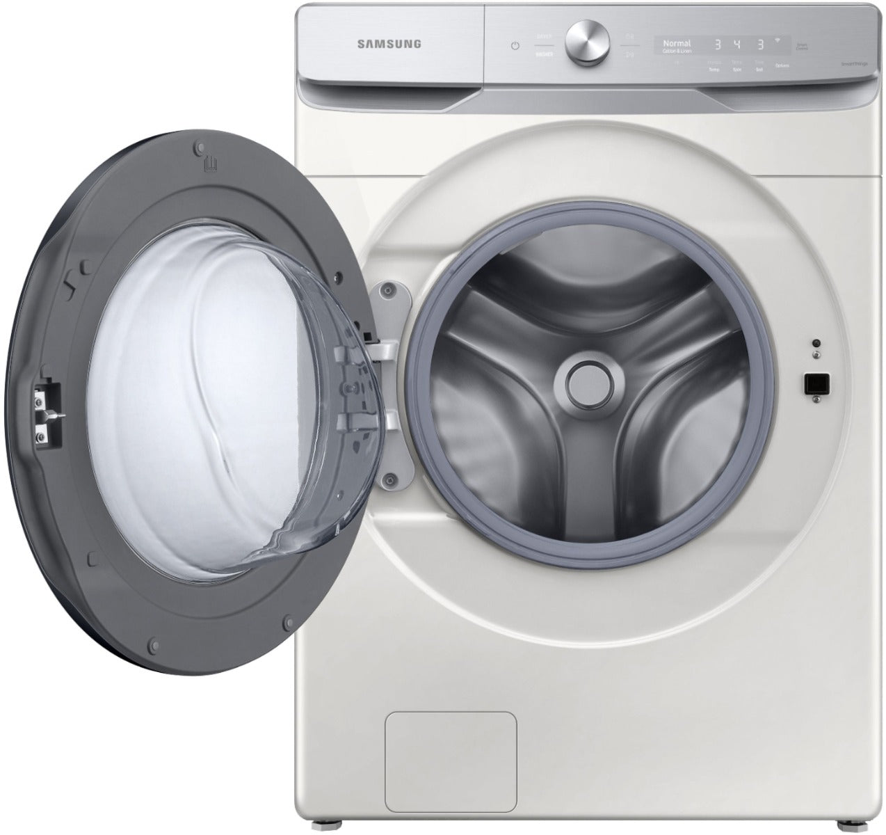 | (1) x *Samsung 5.0 Cu. Ft. High Efficiency Stackable Smart Front Load Washer Steam and CleanGuard Ivory |