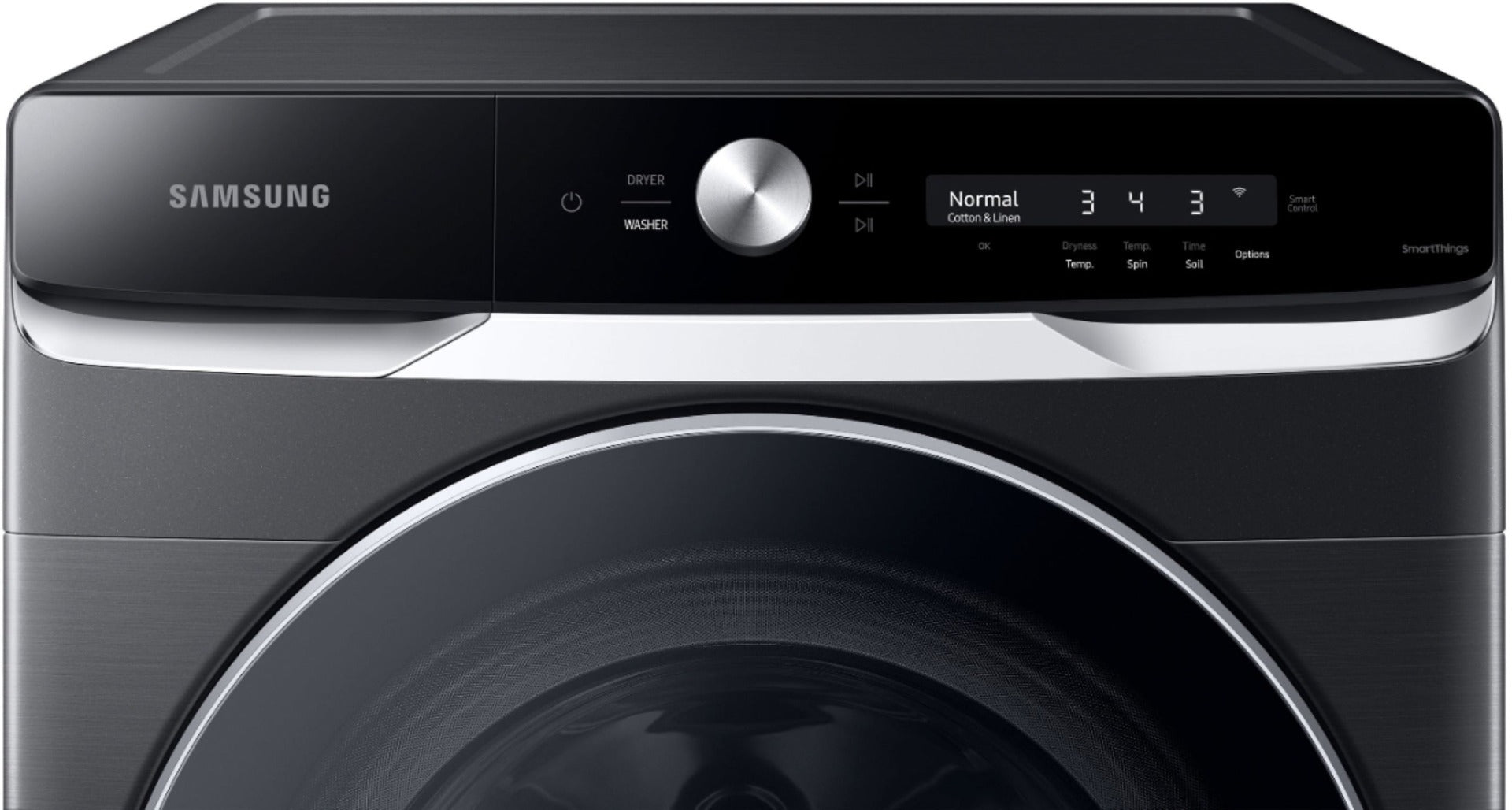 Samsung’s simple to use, AI Powered Smart Dial learns and recommends your favorite wash cycles and allows you to customize your cycle list, change the displayed language, and operate the dryer right from the washer when the units are stacked.¹