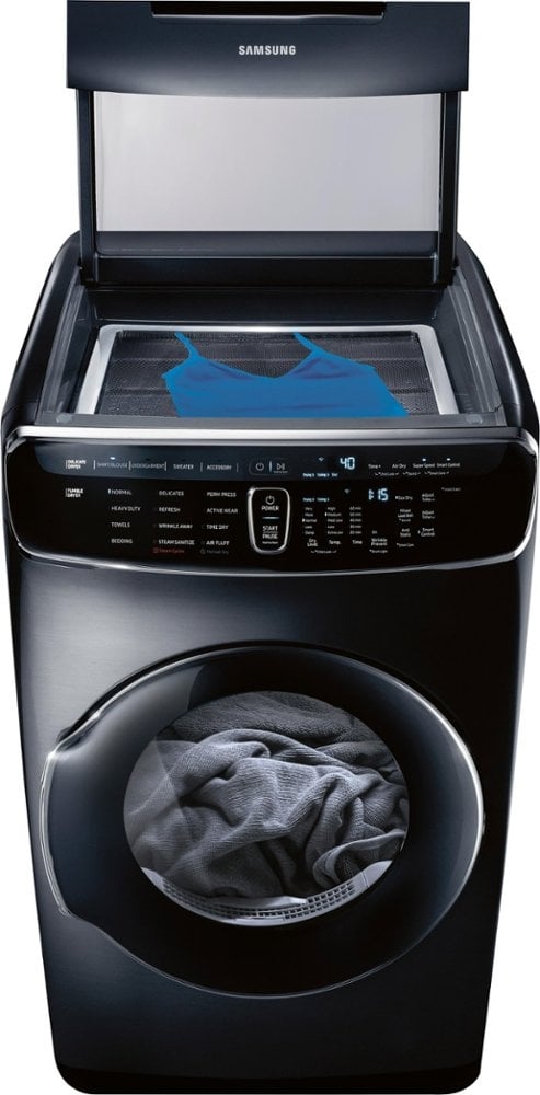 Samsung's FlexDry Dryer provides the ultimate drying flexibility by combining a conventional large capacity dryer with a delicate dryer, so you dry delicates and everyday garments at the same time. The standstill delicate dryer lets you lay flat undergarments, sweaters, and accessories to dry to prevent the items from shrinking and fabric damage. Combined with the Samsung FlexWash Washer, the Samsung FlexWash + FlexDry laundry pair provides a complete laundry solution to provide the optimal care for your clothes. Advanced features, such as MultiSteam technology, give you the ability to steam away wrinkles.