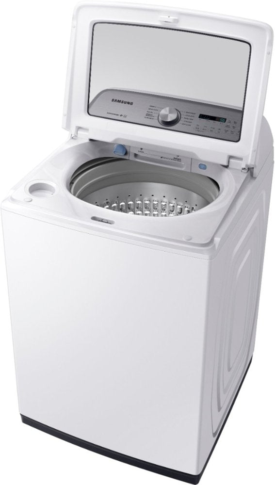 Samsung's new 5.4 cu. ft. large-capacity top-load washer helps you fit more in every load and cut down on laundry time, leaving more time for you. It's also equipped with Active WaterJet, a built-in faucet that lets you pretreat stained clothes with a press of a button, and a Deep Fill option that allows you to maximize the water level used during your washing cycle.