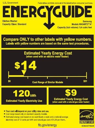 | (1) x *Samsung WA54R7200AW Washing Machine Top Loading Freestanding White |